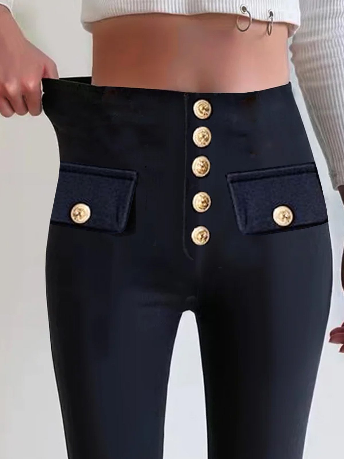 Plain Jersey Casual Buckle Legging