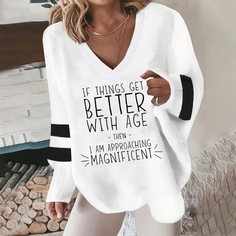 Unique Plain Long Sleeve Zip V-Neck Sweater