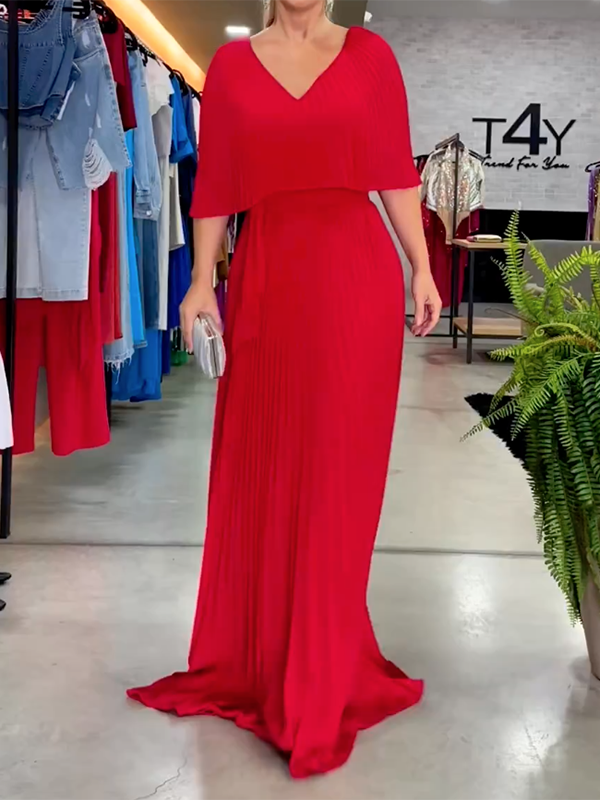 Solid Color Short Sleeves V-Neck Maxi Dresses