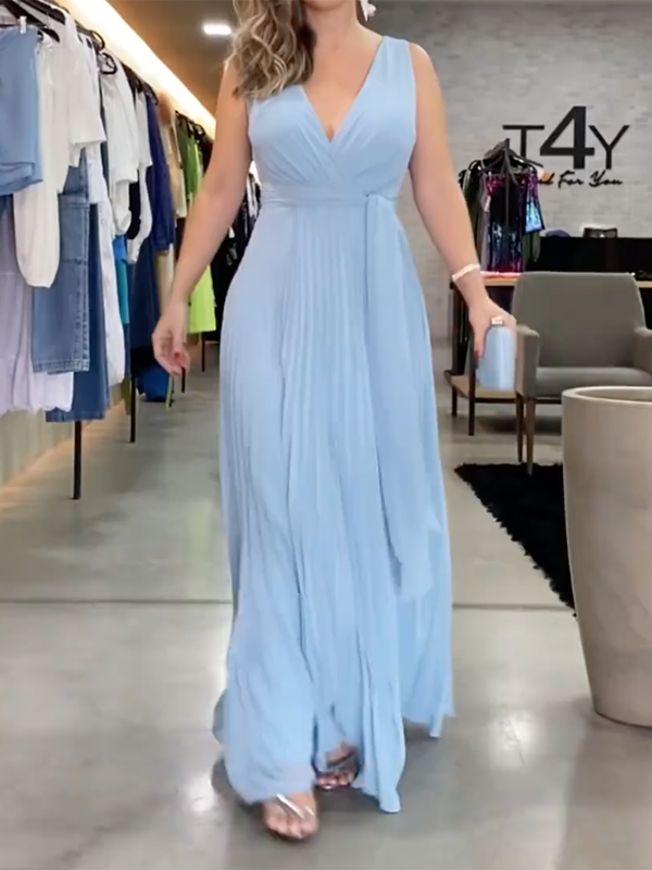 Solid Color Empire Sleeveless V-Neck Maxi Dresses