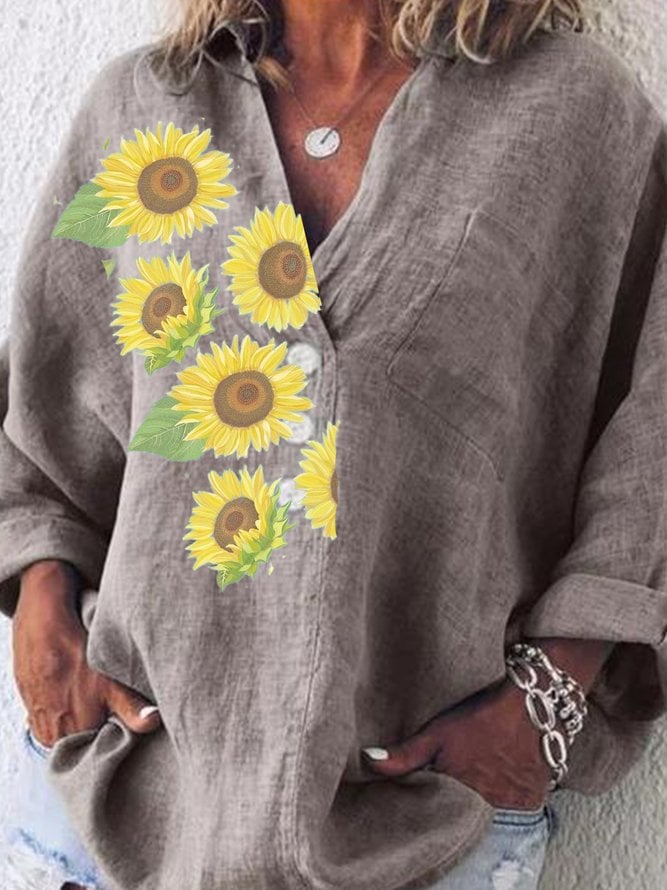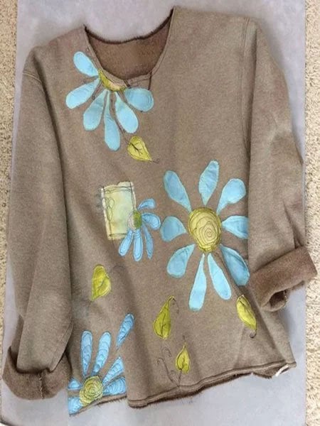 Women Light Brown Floral Long Sleeve Shirts & Tops