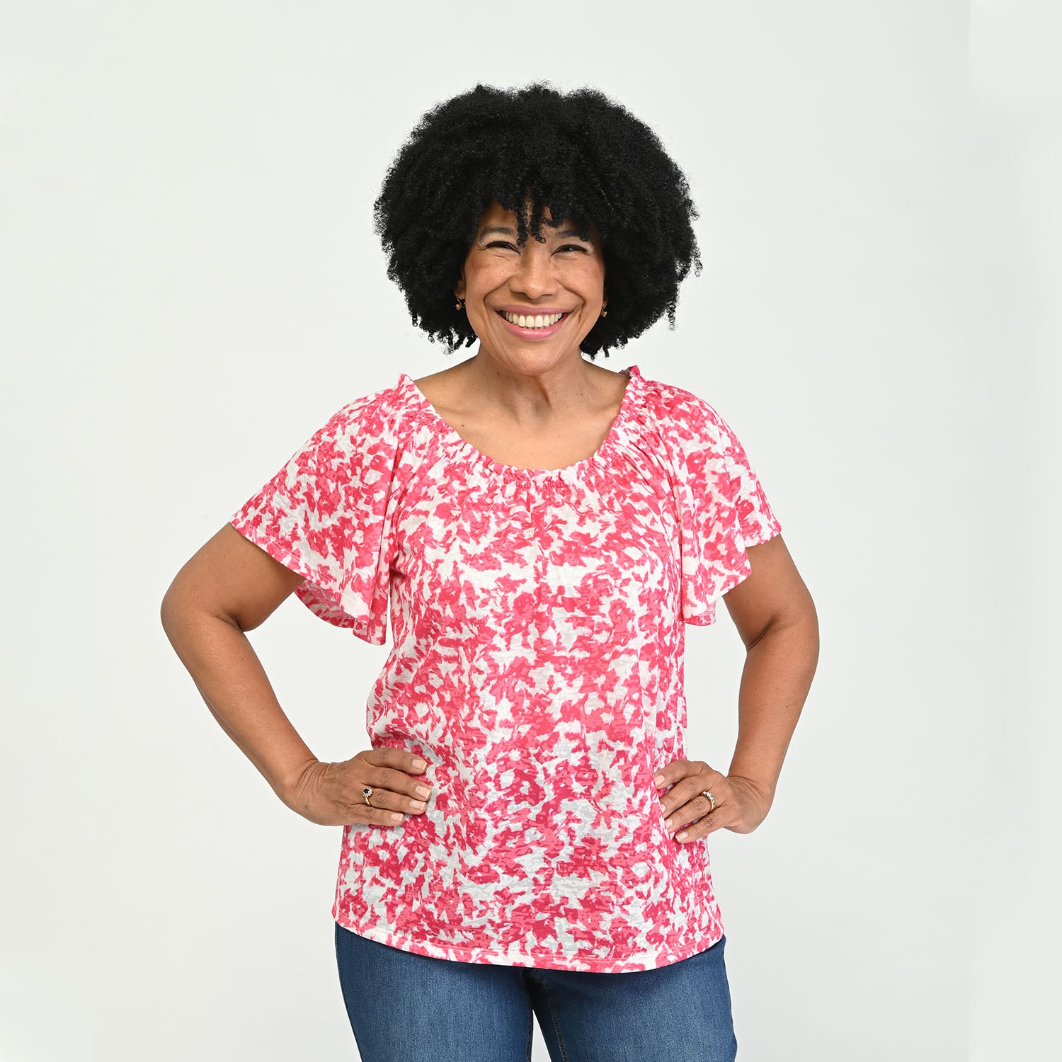 Printed Ruffle Neck Top
