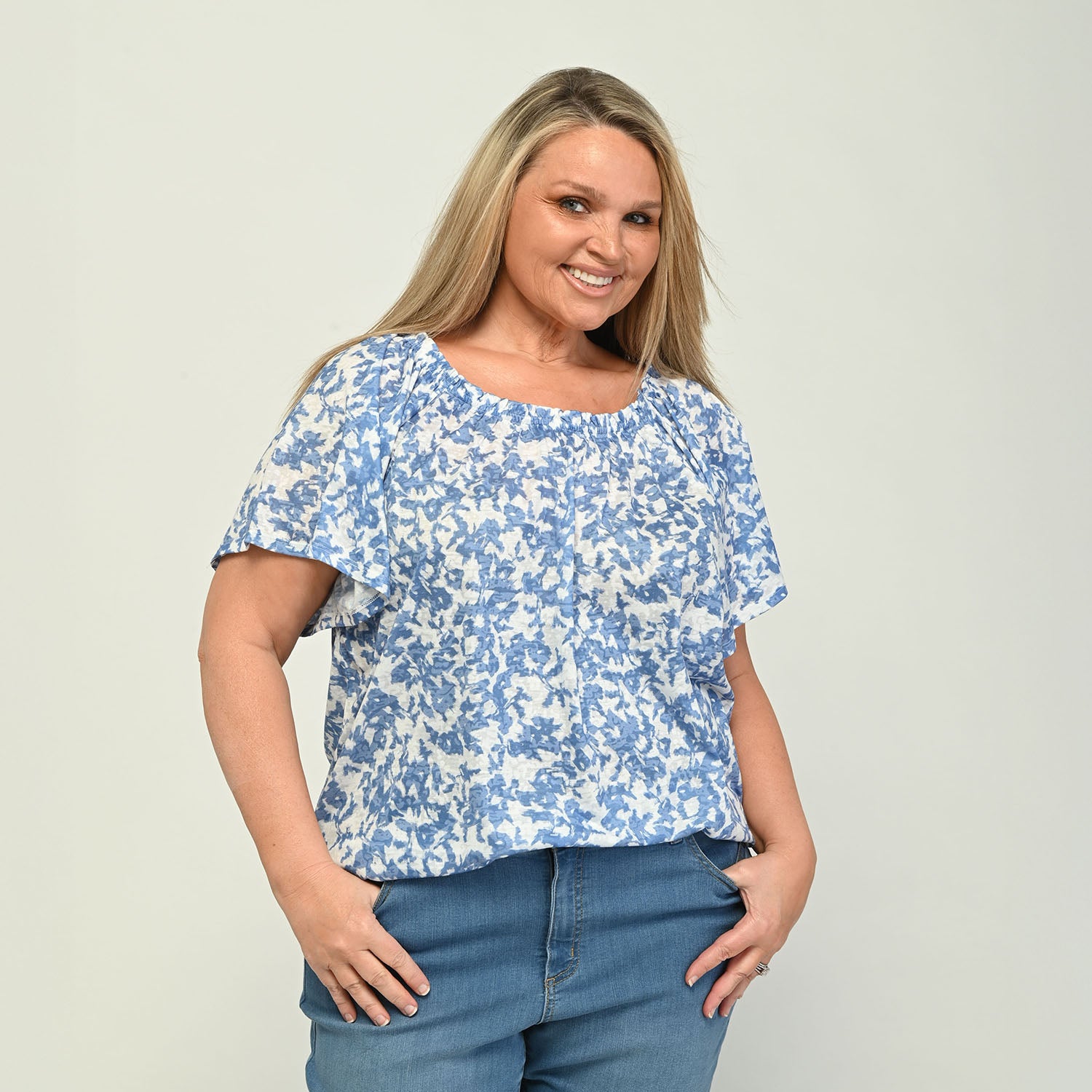 Printed Scoop Neck 3/4 Sleeve Top