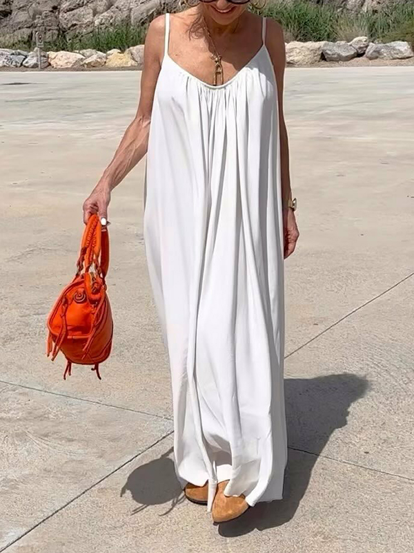 Solid Color Loose Spaghetti-Neck Maxi Dresses