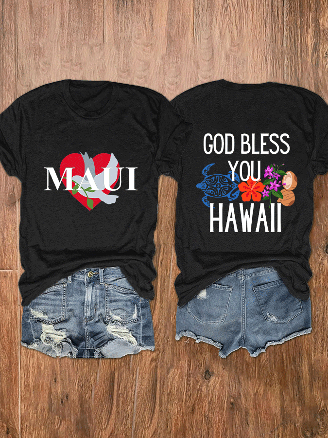 Women's 'God Bless You Hawaii Maui' Print T-Shirt
