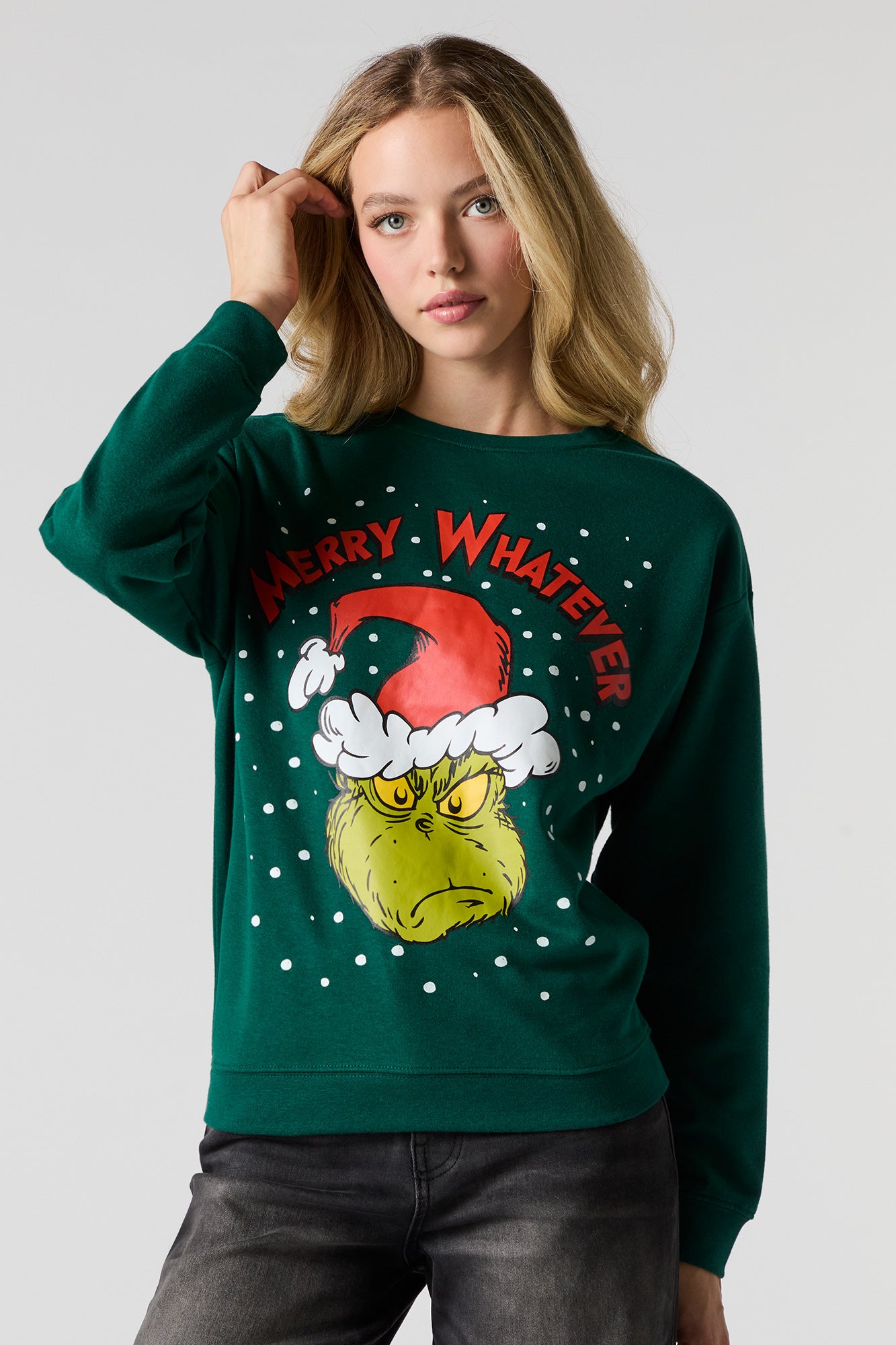 Merry Whatever Grinch Graphic Fleece Christmas Sweatshirt