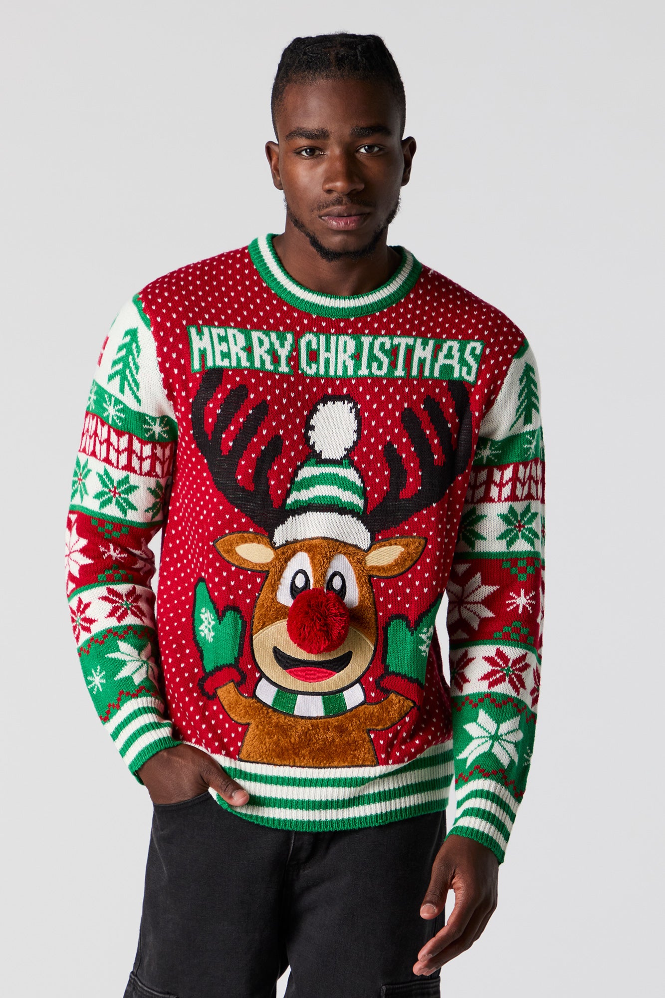 Fuzzy 3D Reindeer Ugly Christmas Sweater