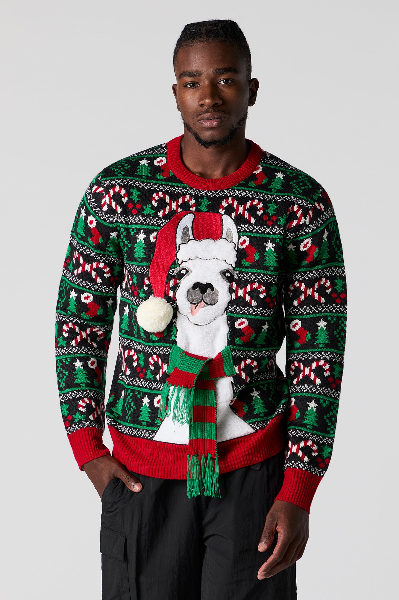 Fuzzy 3D Llama Ugly Christmas Sweater