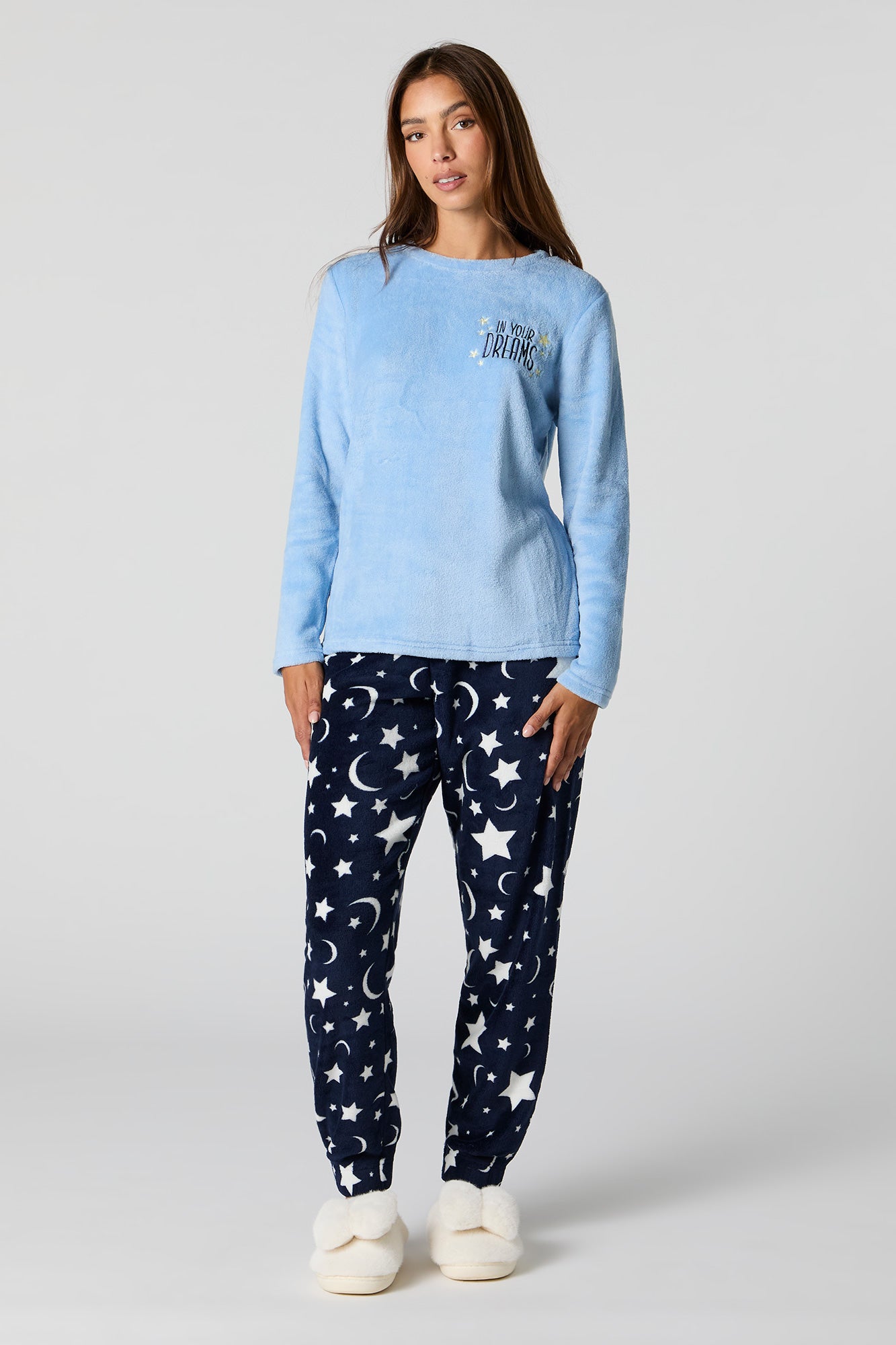 Plush Long Sleeve Top and Pant 2 Piece Pajama Set