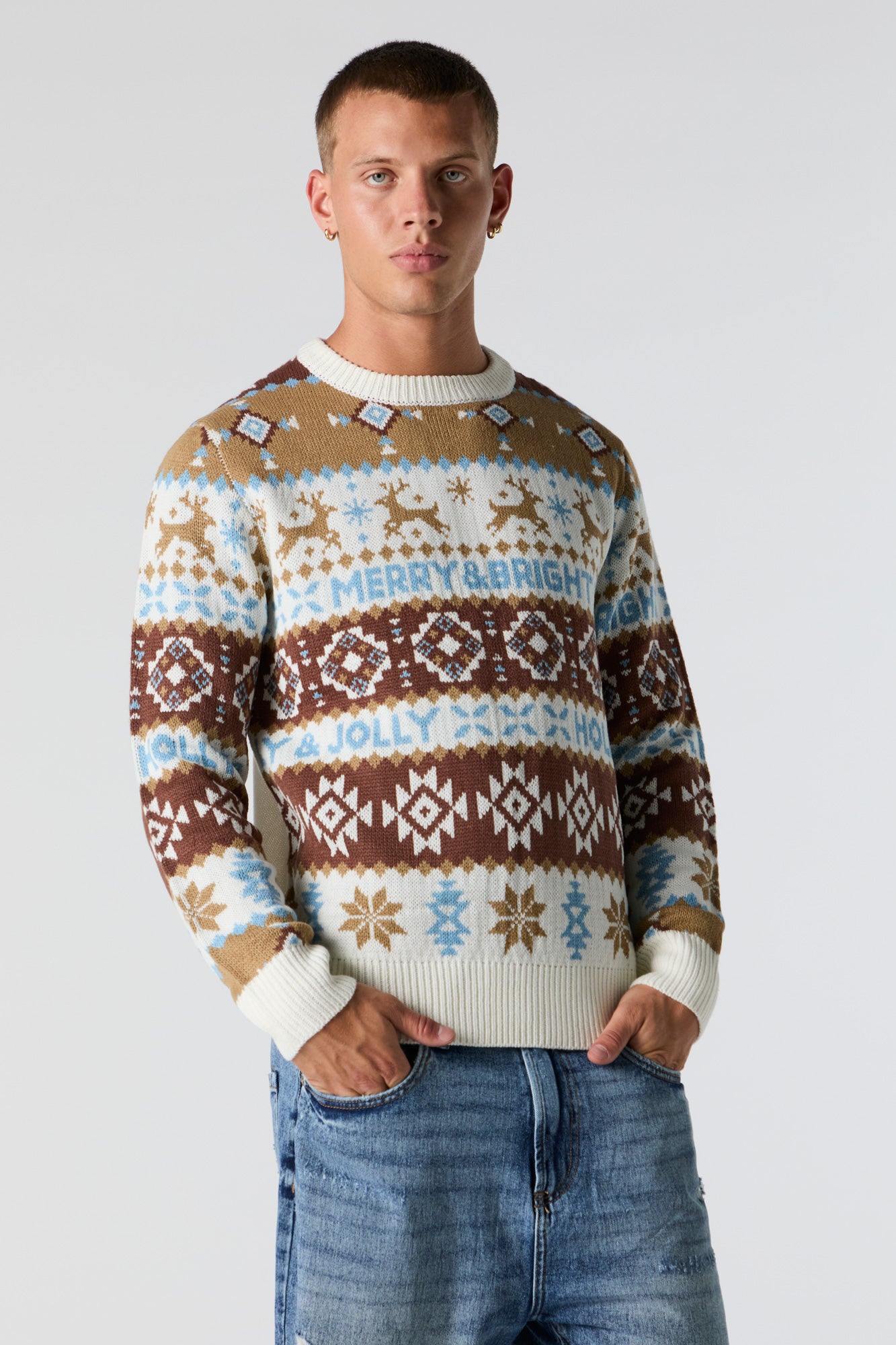 Merry and Bright Fairisle Jacquard Knit Christmas Sweater