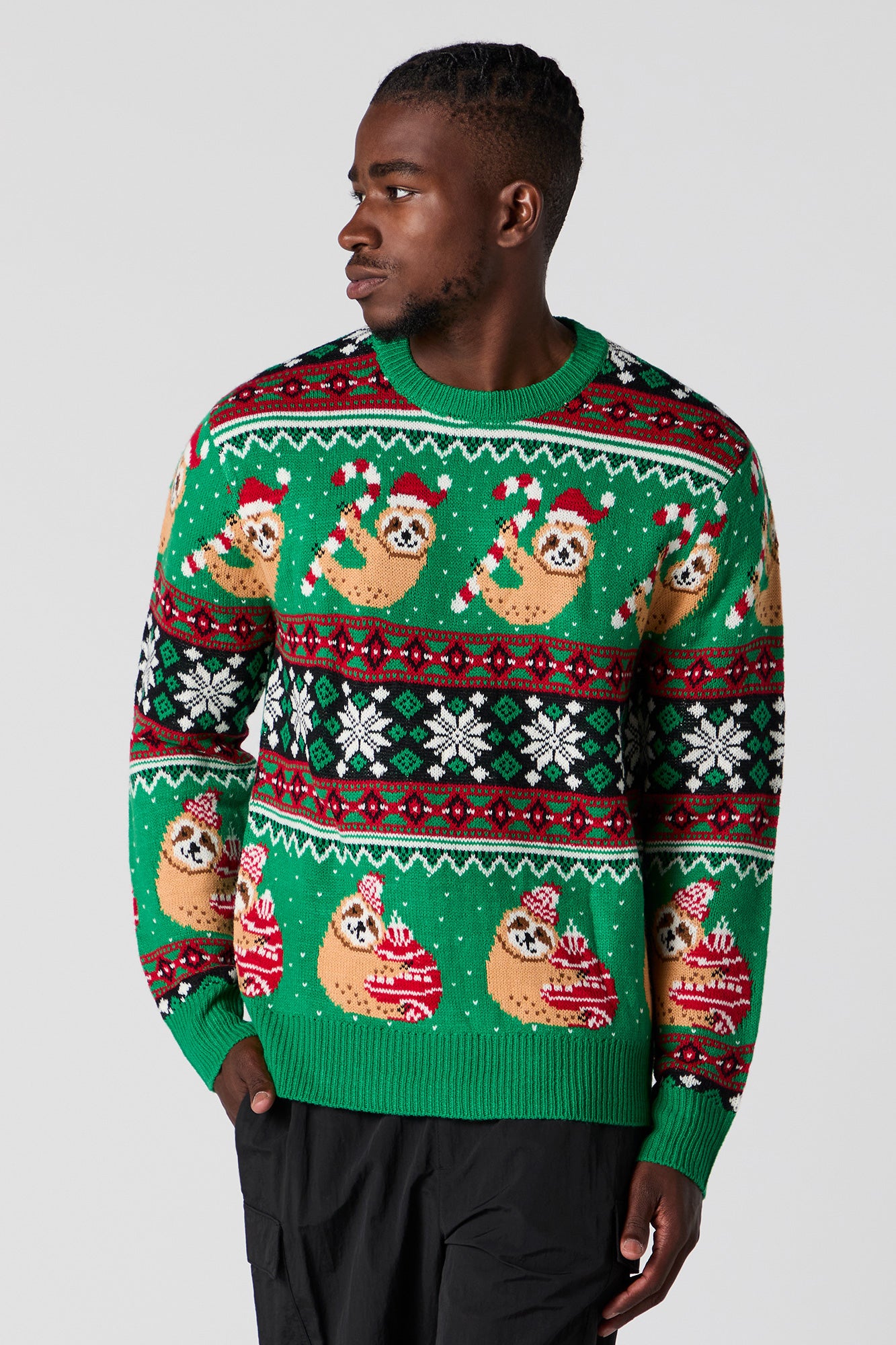 Sloth Jacquard Knit Ugly Christmas Sweater