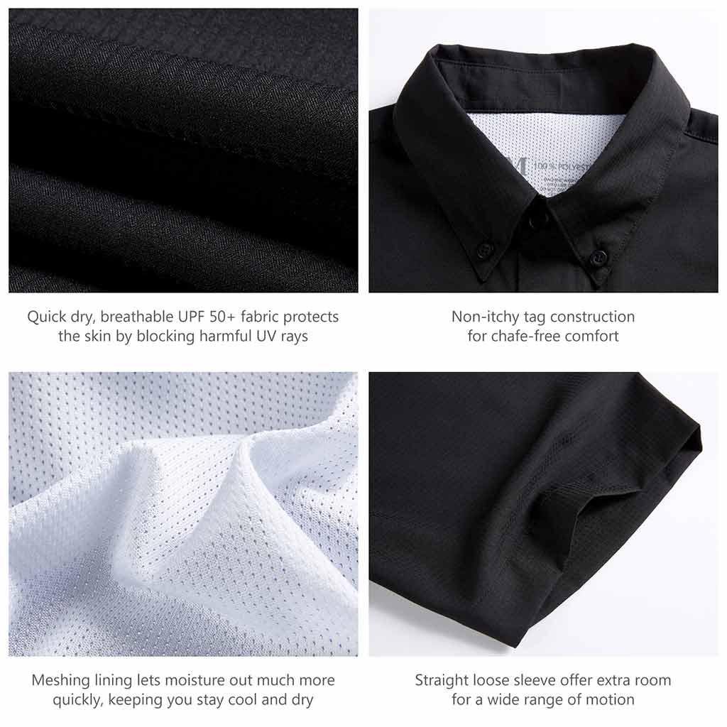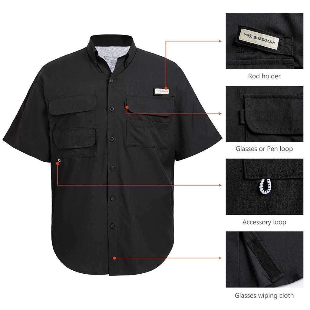 No scratchy tag construction for chafe-free comfort; A small D ring at the back to hang the shirt and it can also attach a fishing net; A wiping cloth inside the bottom hem solves your foggy-eyeglass problem