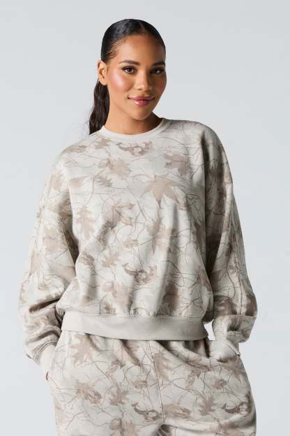 This hoodie features fleece material, all-over print, crew neckline, long sleeves, and ribbed knit trim. Pair with our to complete the look!