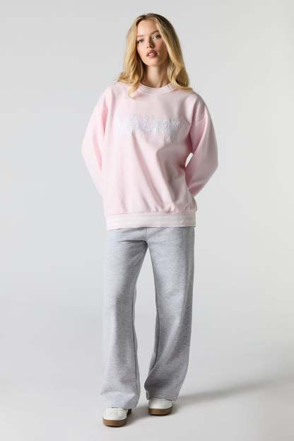 Oversized City Twill Embroidered Fleece Sweatshirt