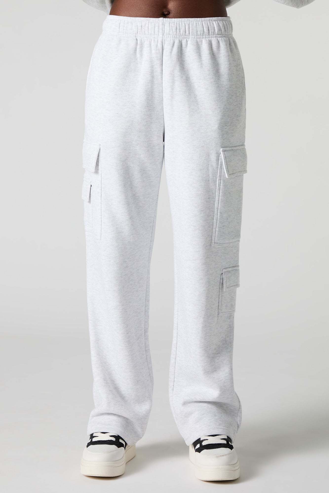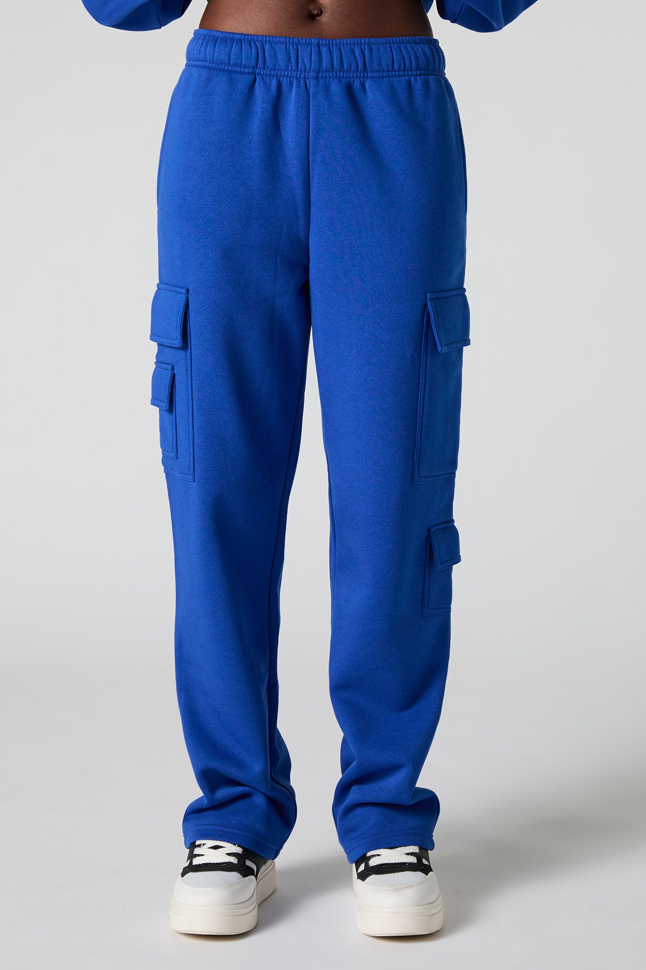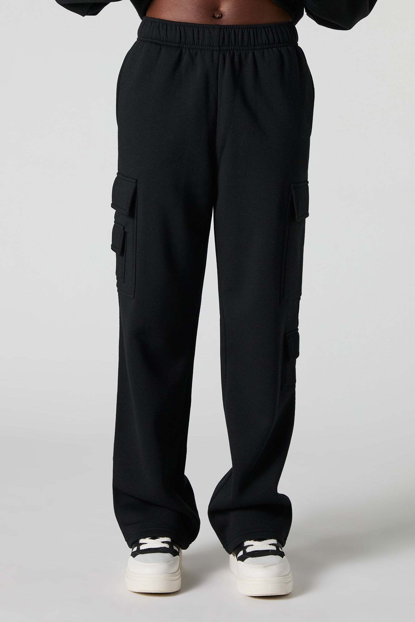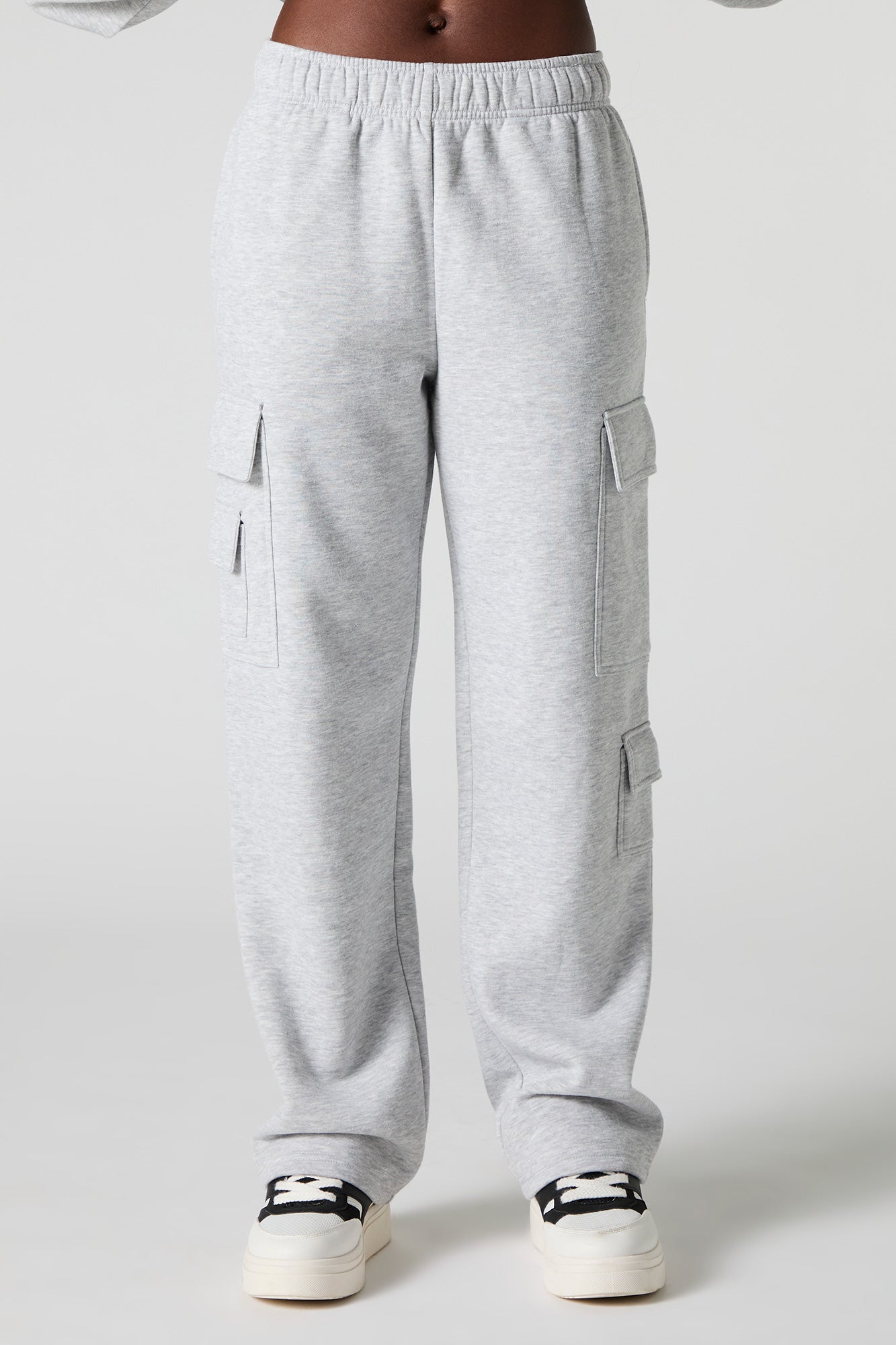 Comfort level: 100. This sweatpant features fleece material, elastic waist, slide-in pockets, cargo pockets, and straight leg. Pair with our to complete the look.