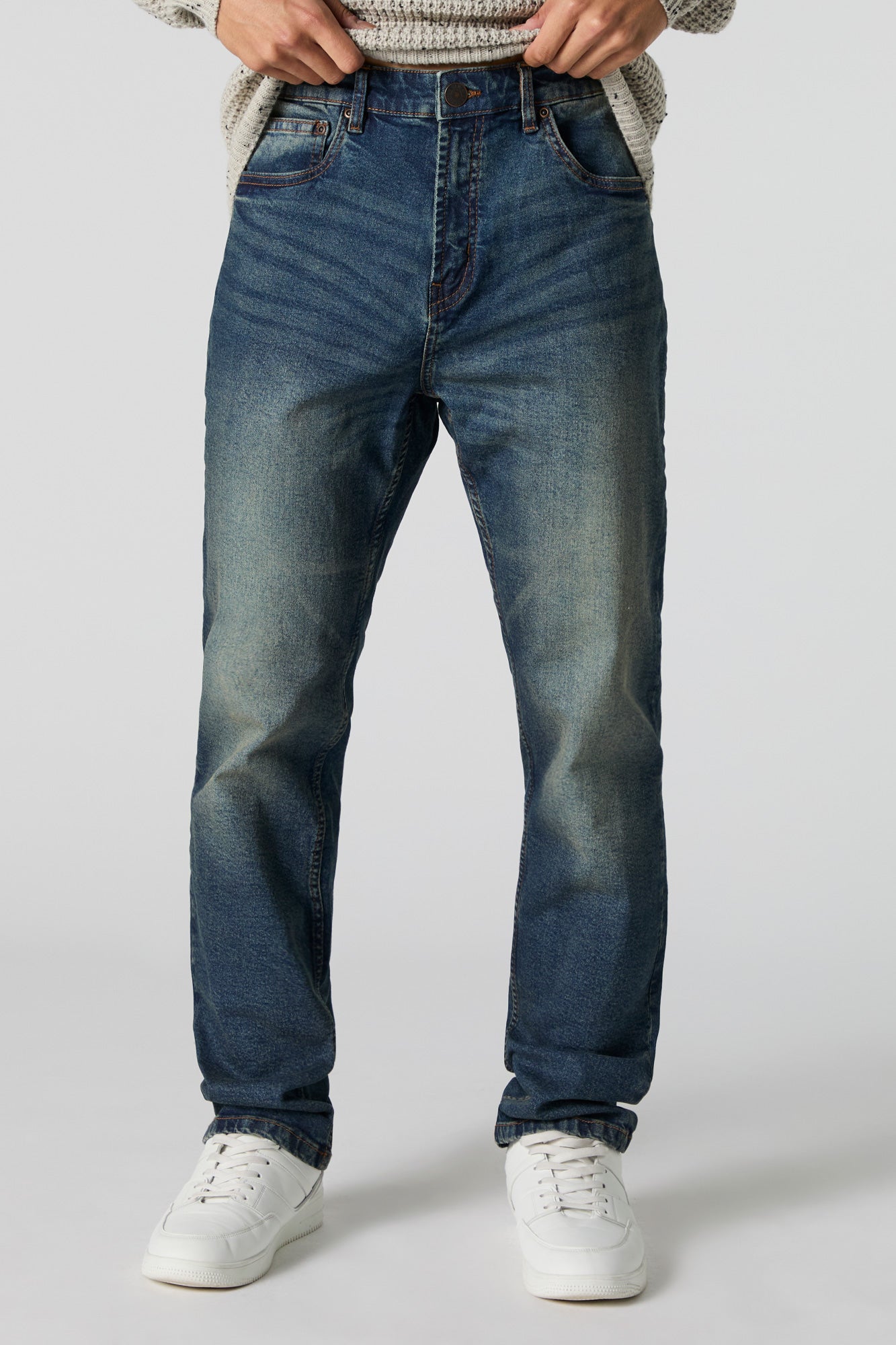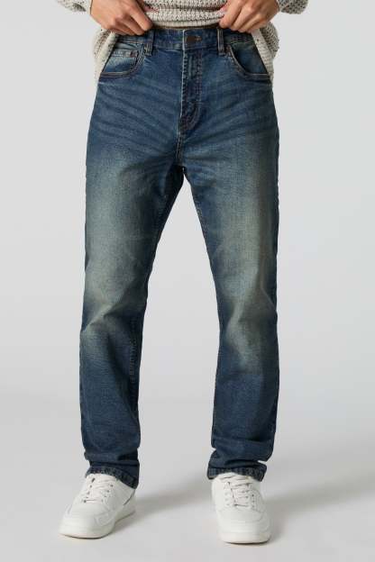 This jean features denim material, zip-fly button-up closure, 5 pockets, belt loops, and straight leg.