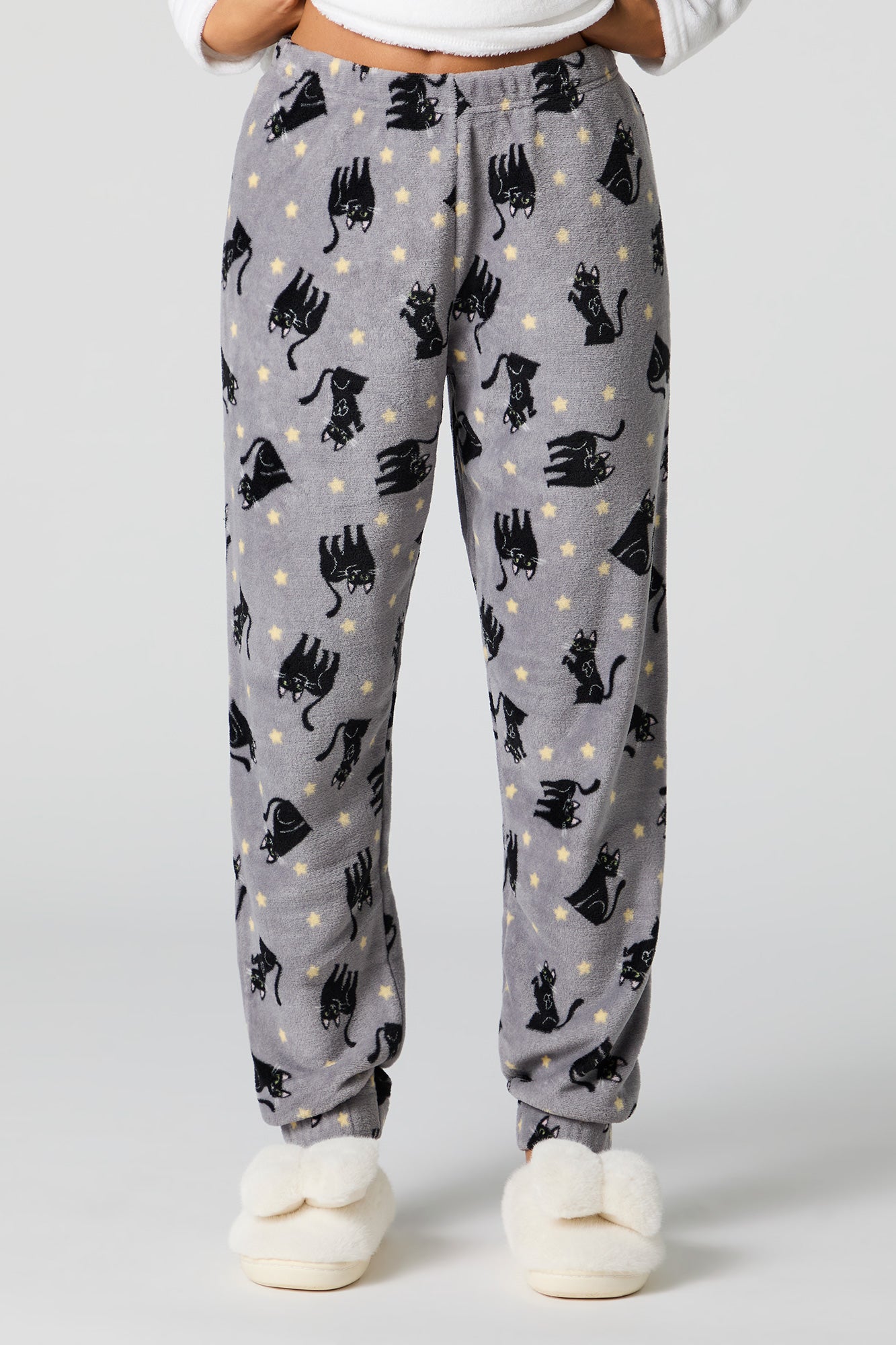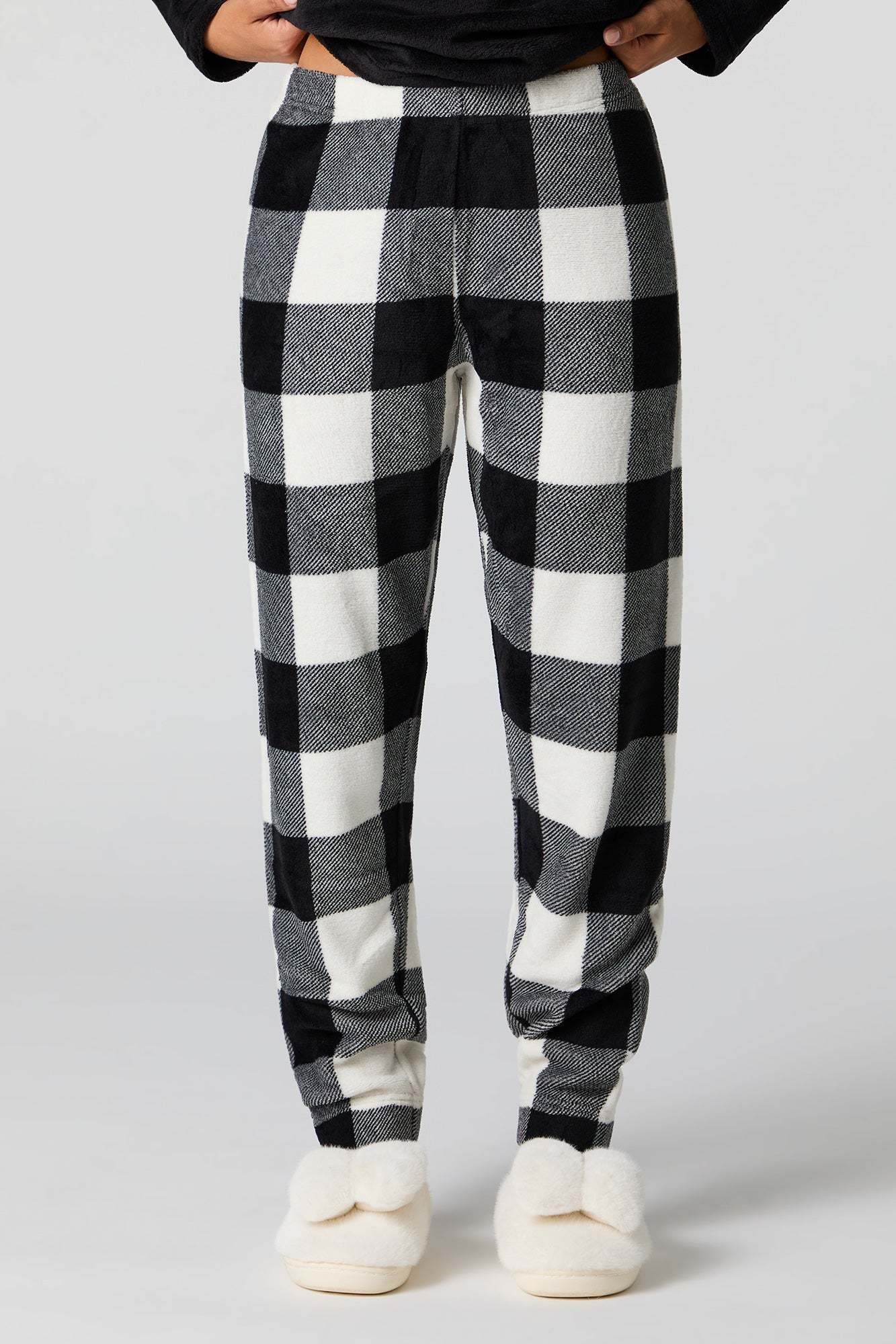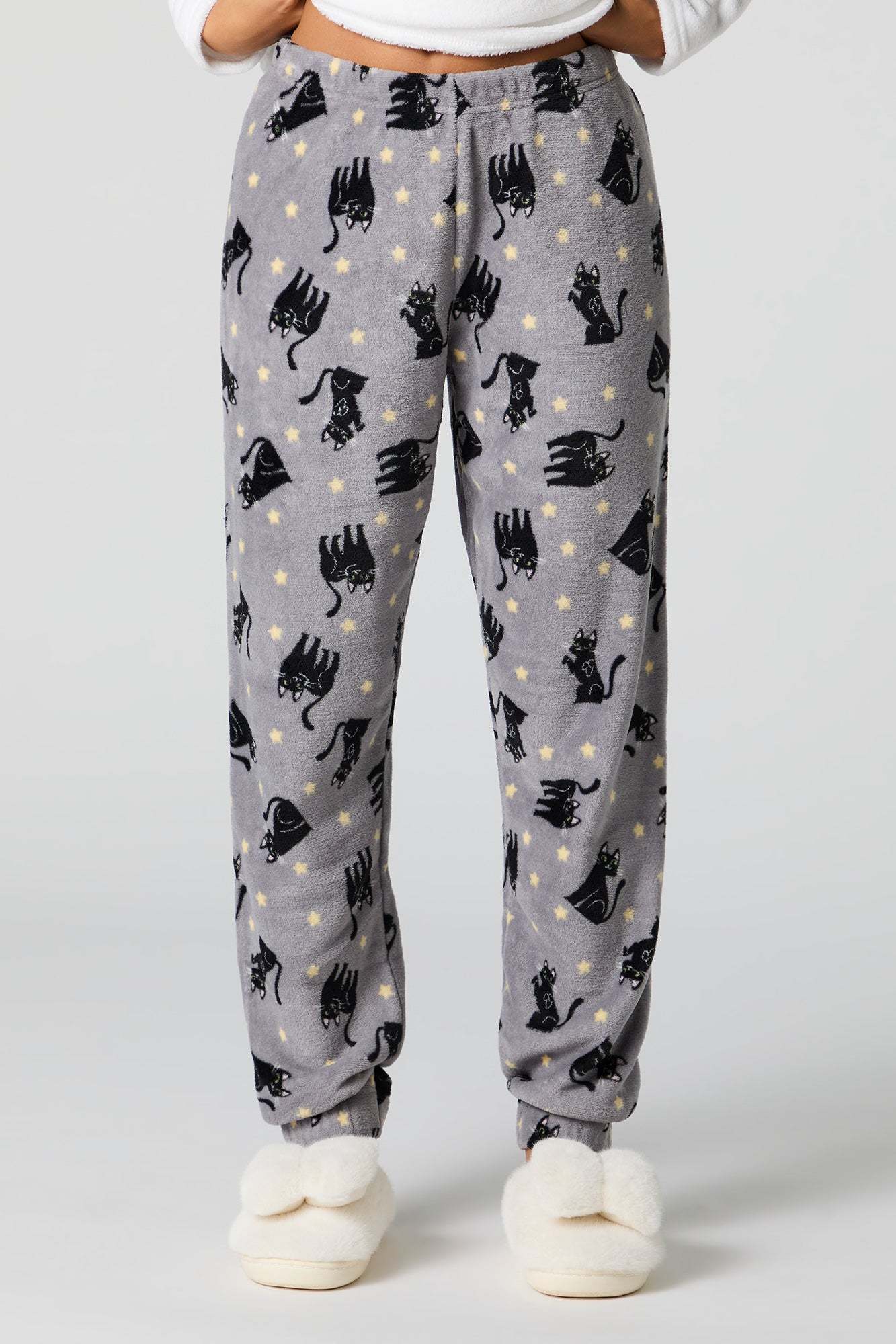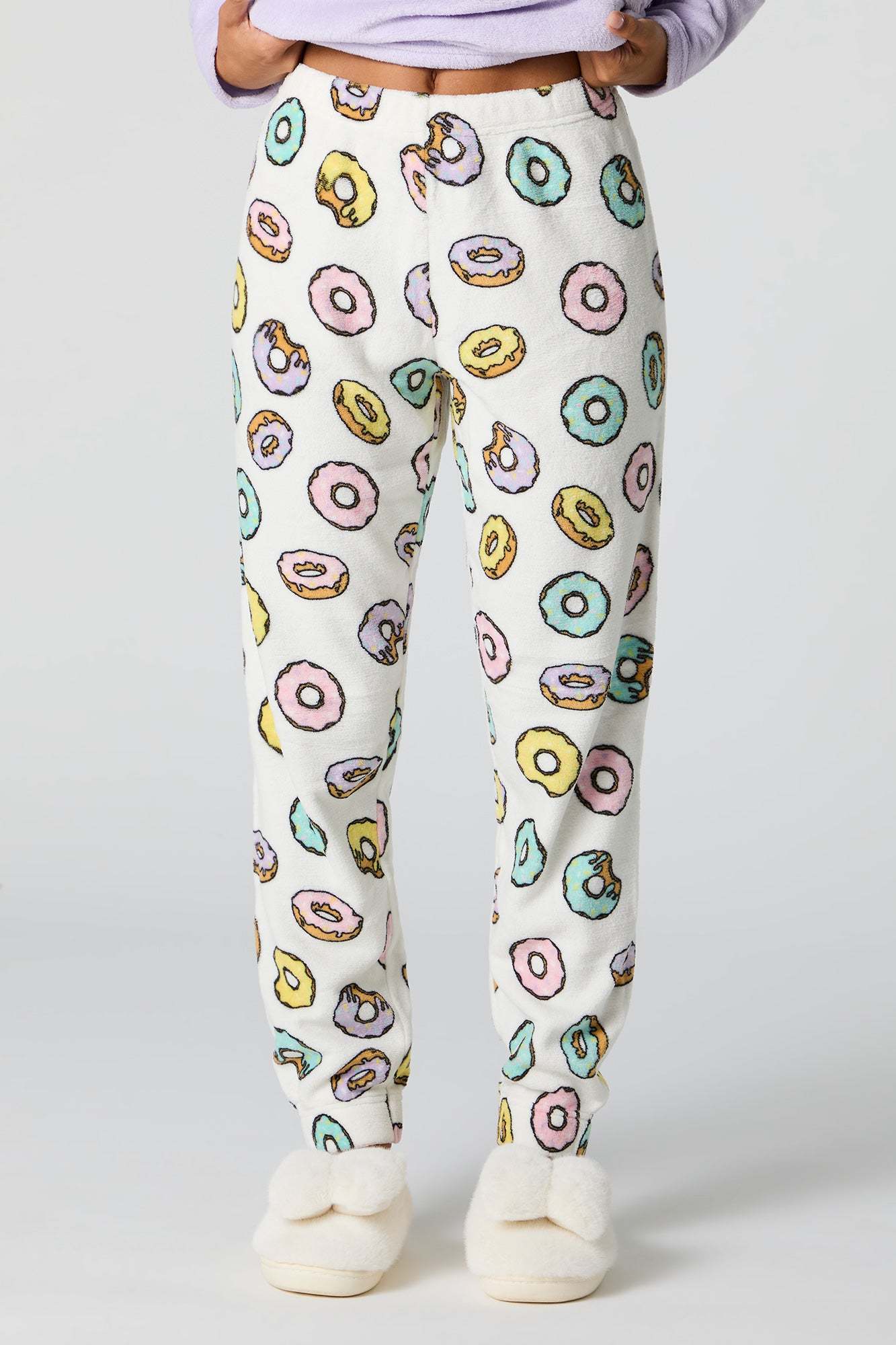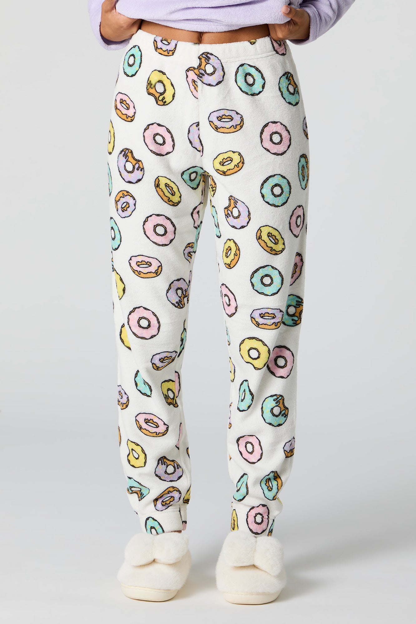 Snuggle up in our plush pajama set. This set comes with a pajama top featuring plush material, embroidered front, crew neckline, long sleeves, and a matching pajama pant featuring plush material, all-over print, and elastic waist.