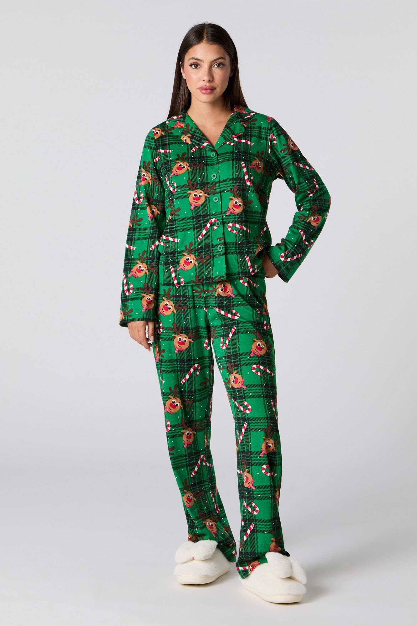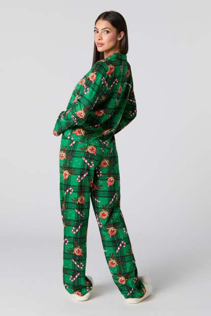 Womens Fammy Jammies Rudolph Flannel 2 Piece Pajama Set