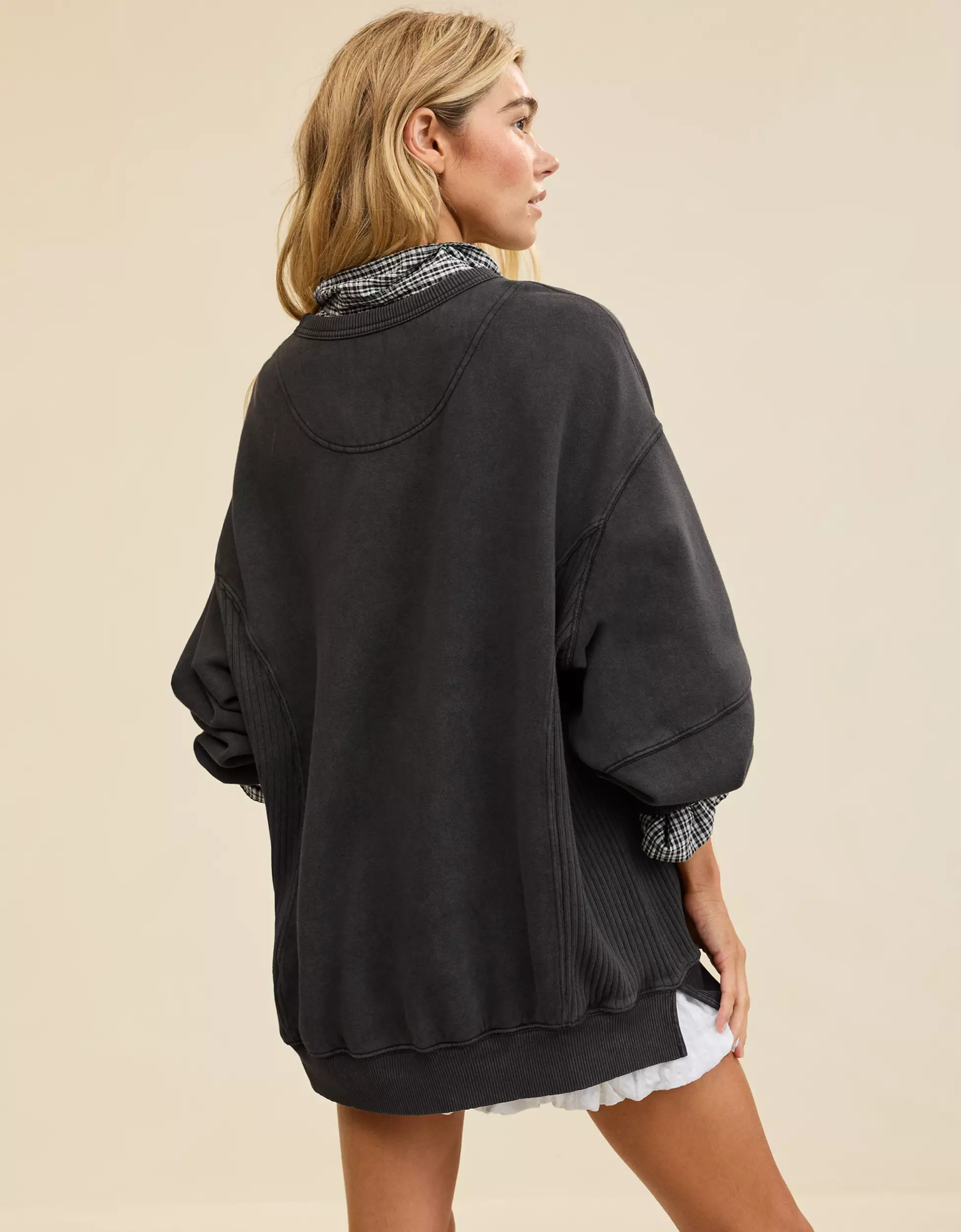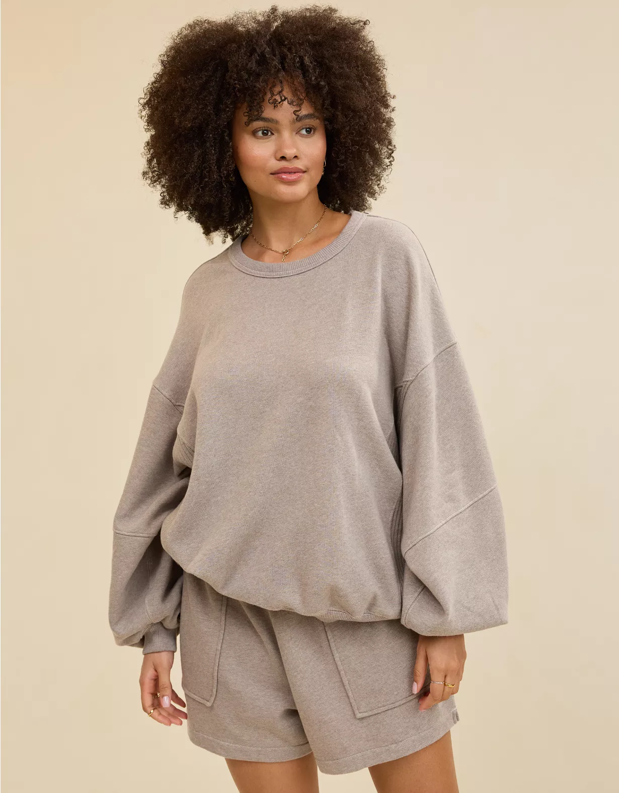 Easy, everyday chic. Channel your inner French girlie.Real Good Everyday fleeceRibbed trim on the crewneck, cuffs and hemRibbed side panelAccessibility deets: over-the-head access for easier on/off!!Wear it with the matching shorts for the cutest set!Materials & Care