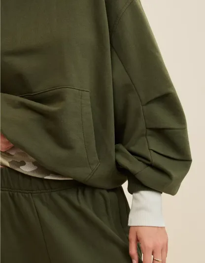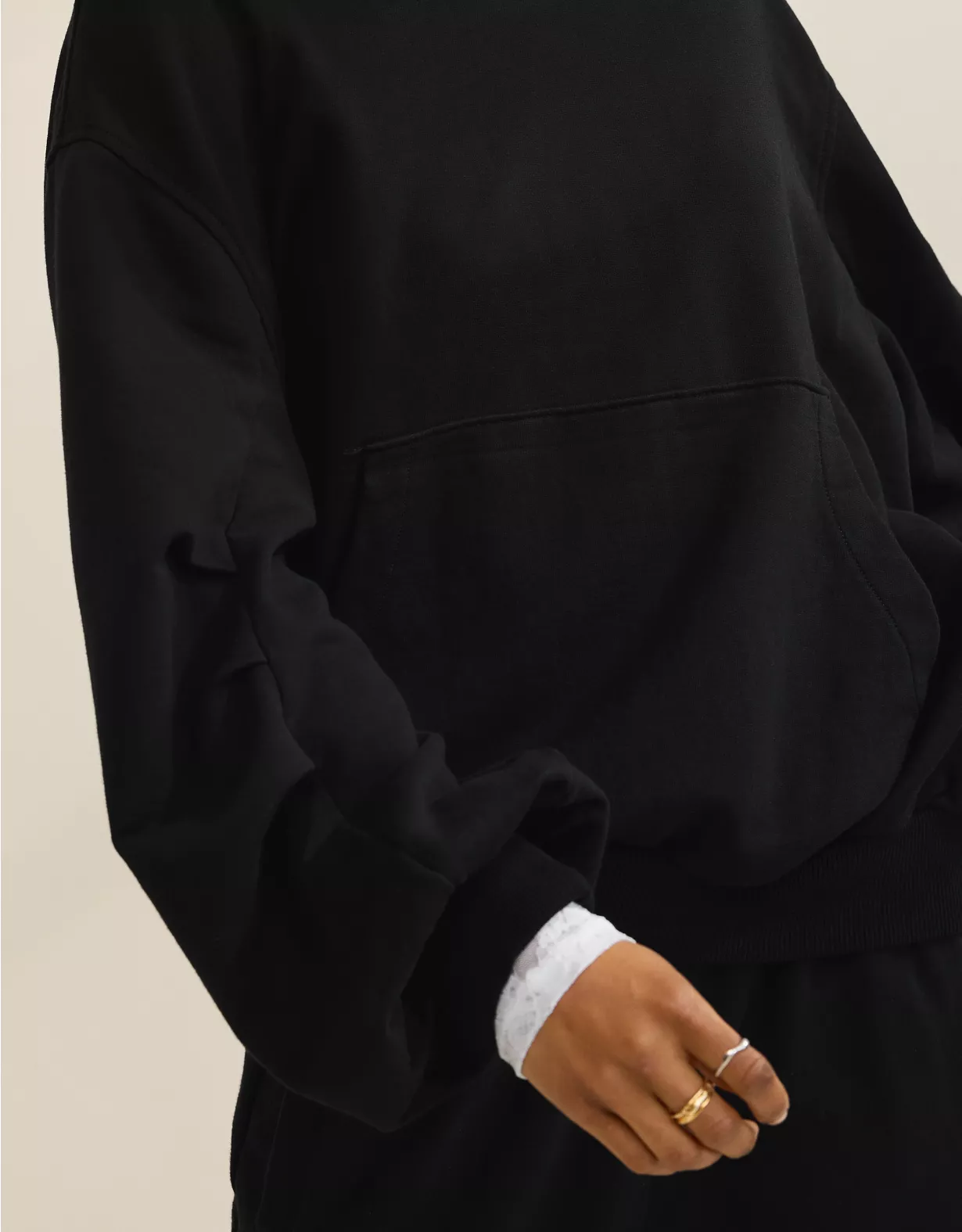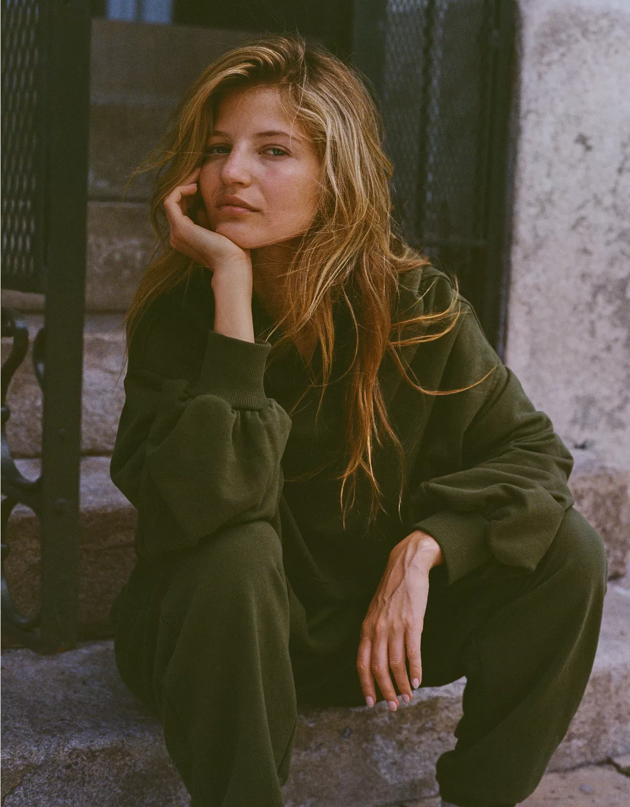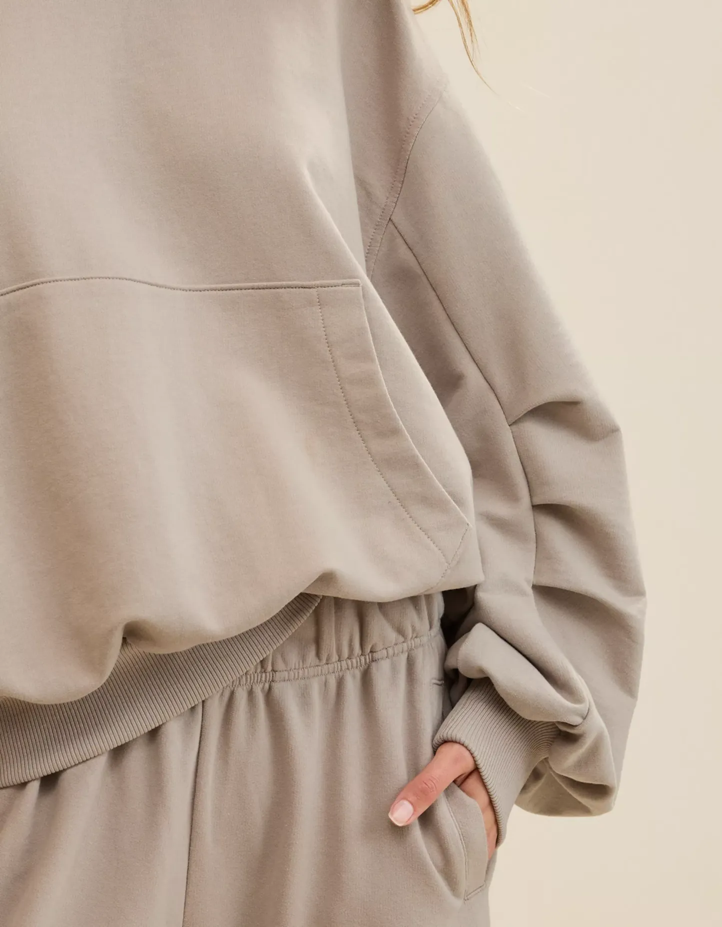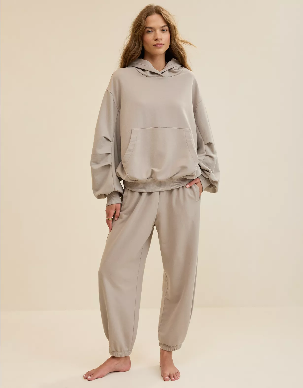 Your new essential travel outfit. Designed in our newest, drapey fleece–this set will take you places.Real Good lightweight fleecePleating deets on the sleevesRibbed trim on the cuffs and hemKanga pocketTip: tuck waistband under for a more classic length!Accessibility deets: over-the-head access for easier on/off!!Materials & Care