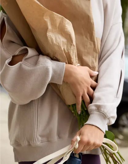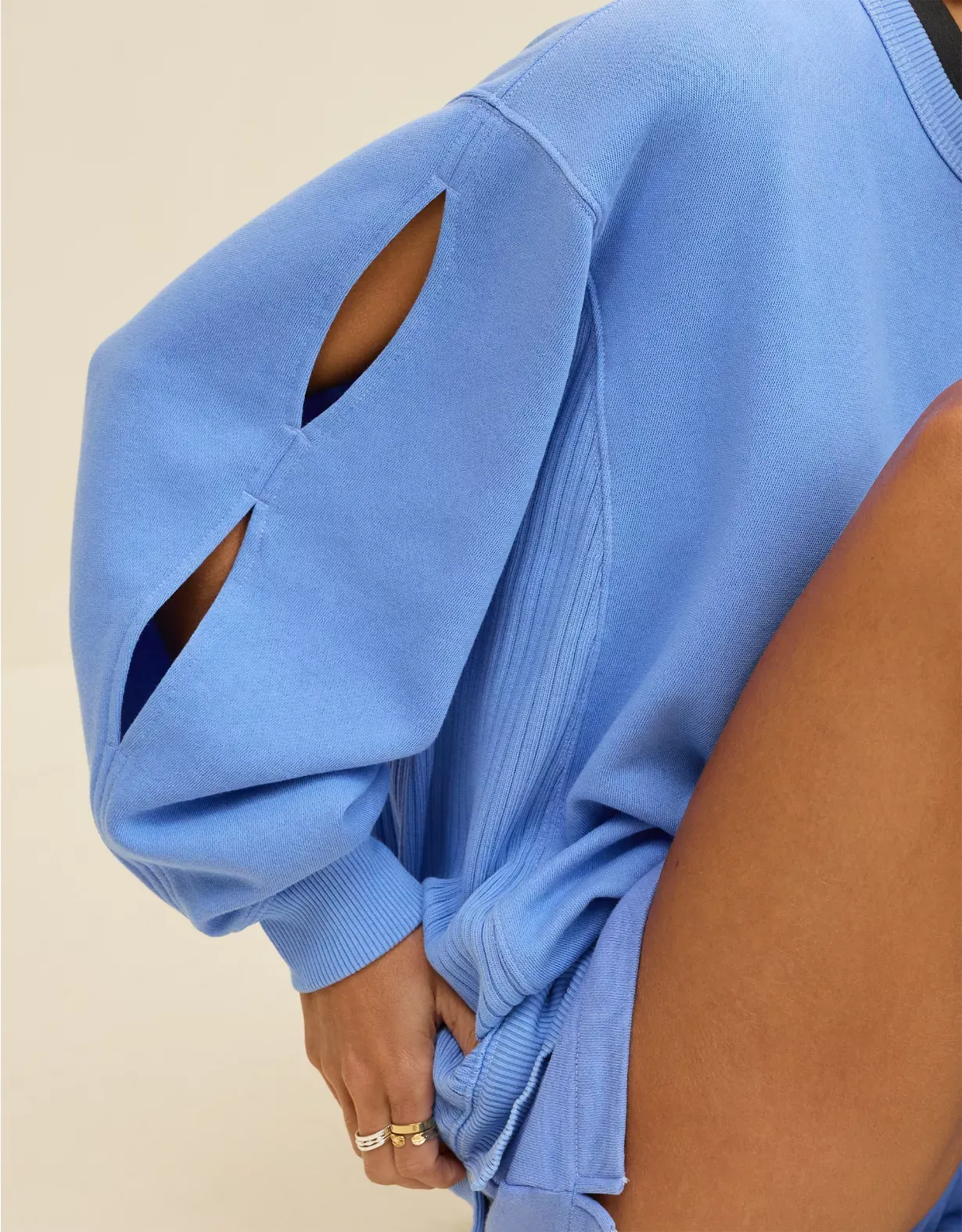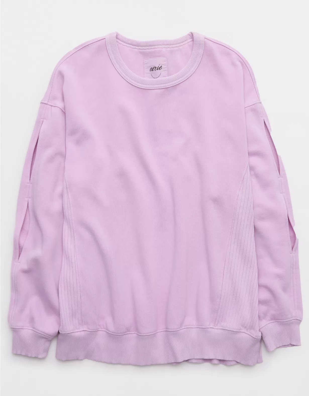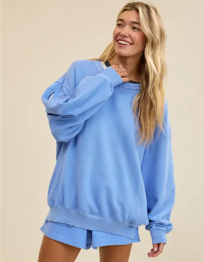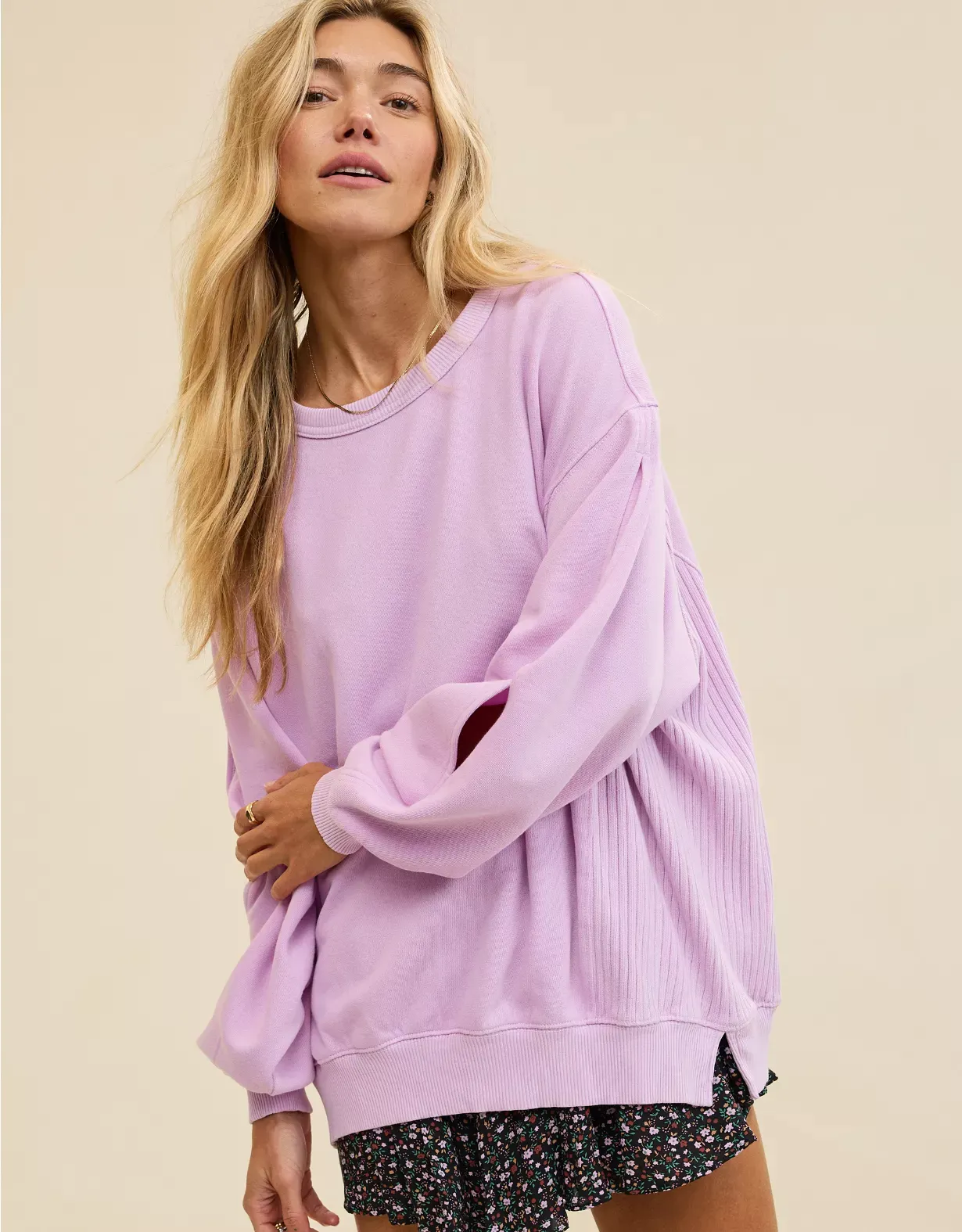 Easy, everyday chic. Channel your inner French girlie.Real Good Everyday fleeceRibbed trim on the crewneck, cuffs and hemRibbed side panelAccessibility deets: over-the-head access for easier on/off!!This style is washed so colors may vary slightly, providing a unique, lived-in look! Wear it with the matching shorts for the cutest set!Materials & Care