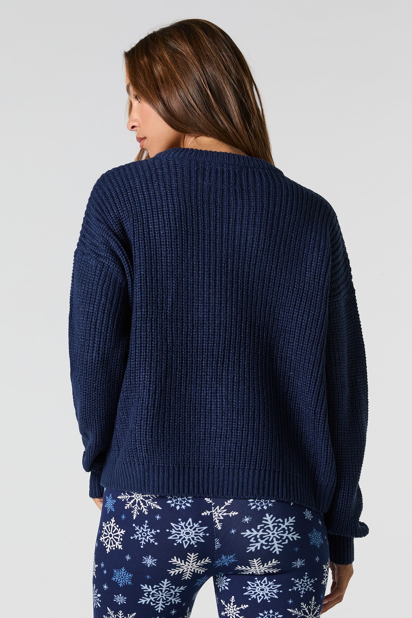 This sweater features ribbed knit material, fuzzy bear with 3D bow, crew neckline, and long sleeves.