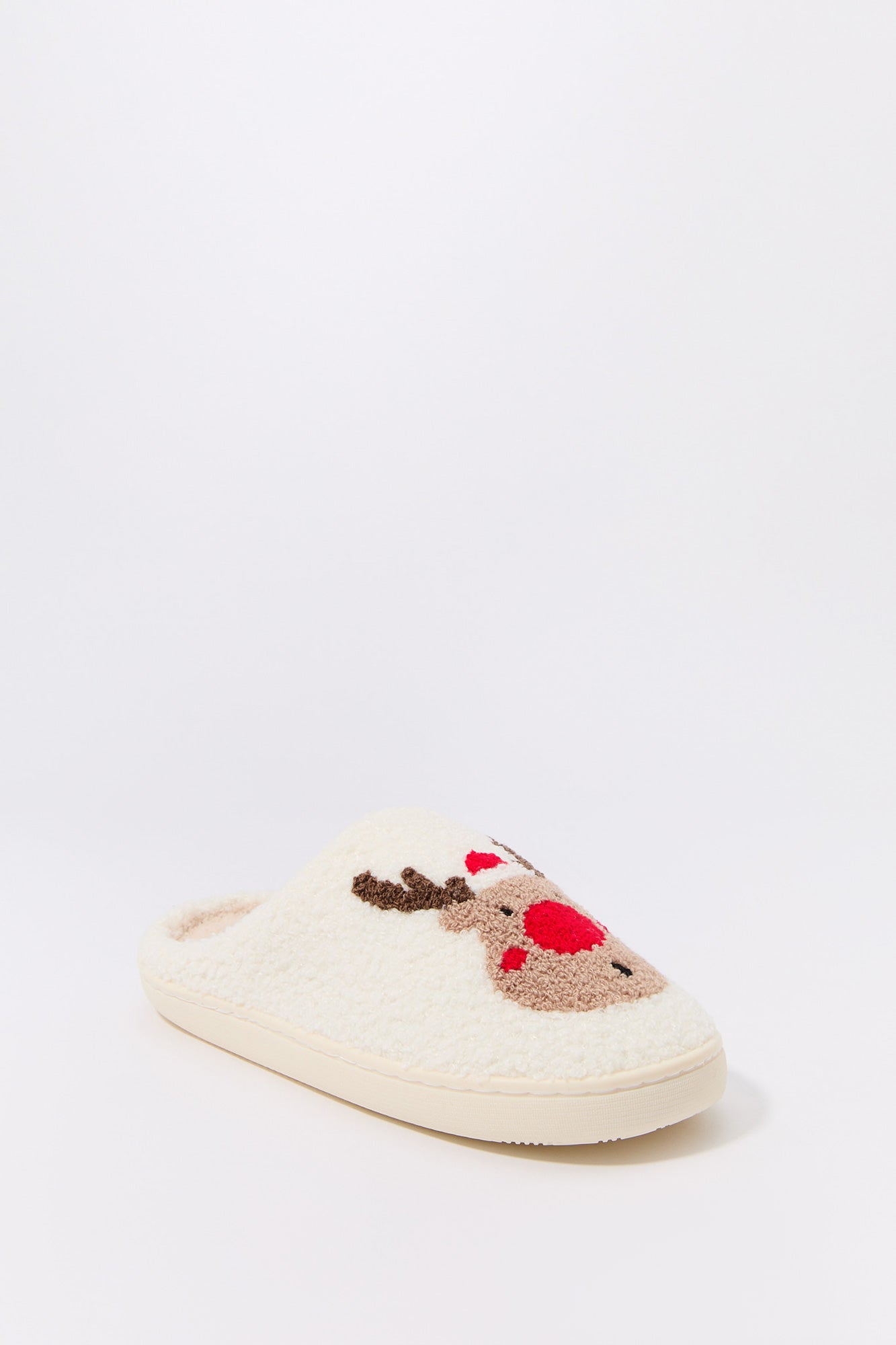 Stay cozy this holiday season with our adorable Christmas slippers. This slipper features sherpa material and slip-on design.
