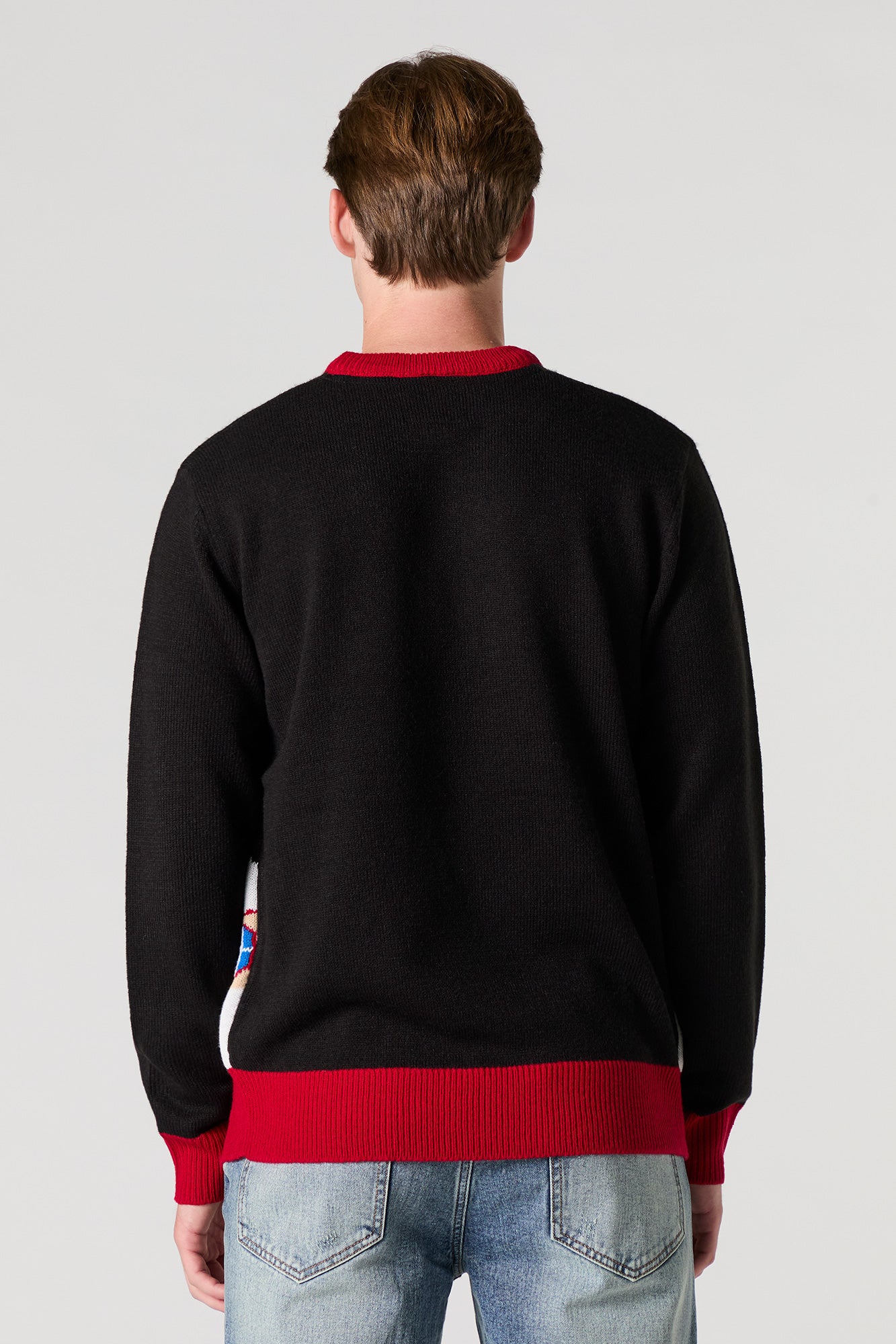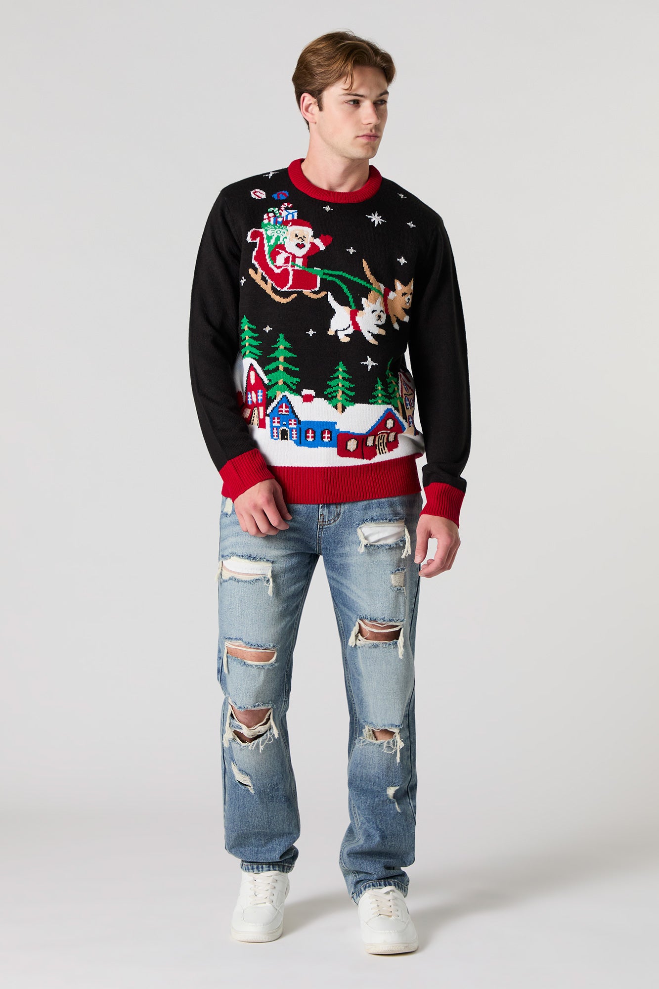 Outshine the crowd at your next holiday party! This sweater features jacquard knit material, crew neckline, long sleeves, and LED light-up capability.