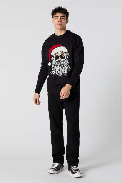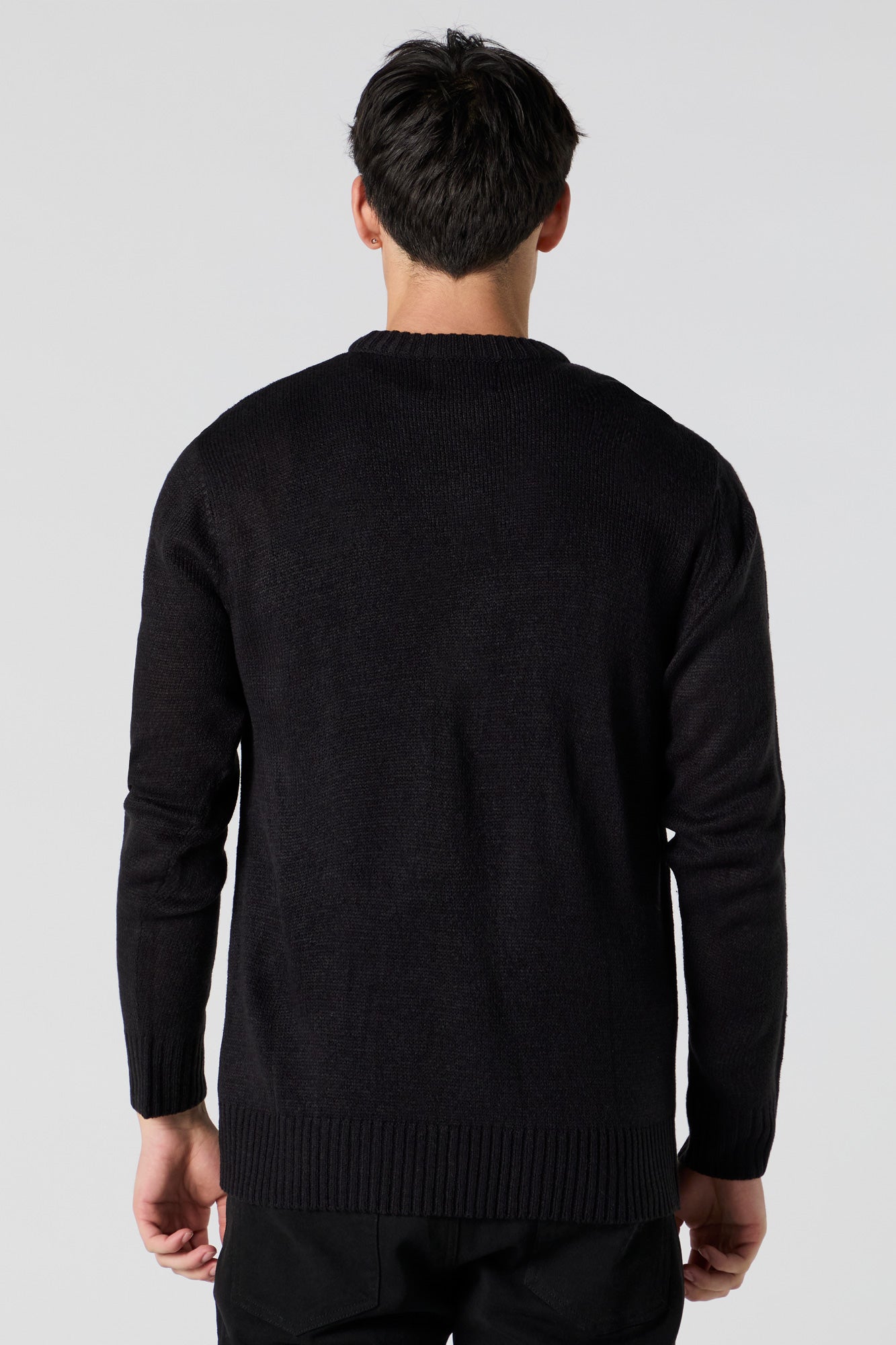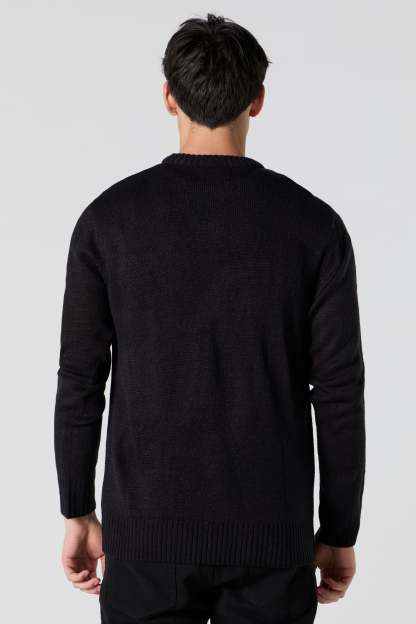 This Christmas sweater features jacquard knit material, crew neckline, long sleeves, and ribbed knit trim.
