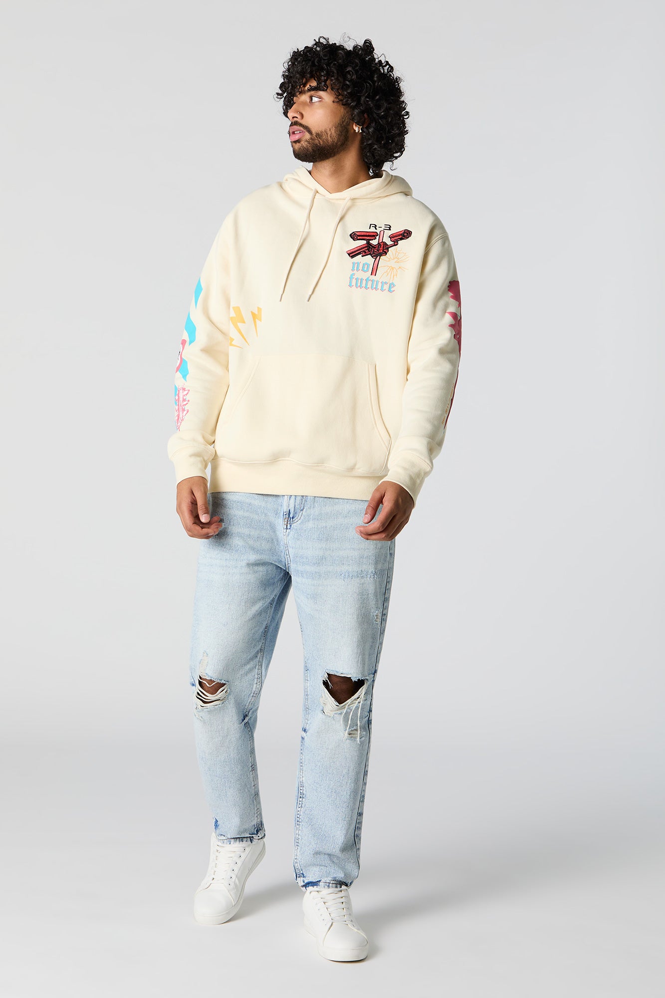This fleece is on fire! This hoodie features fleece material, embroidered front and back, drawstring hood, kangaroo pocket, and long sleeves.