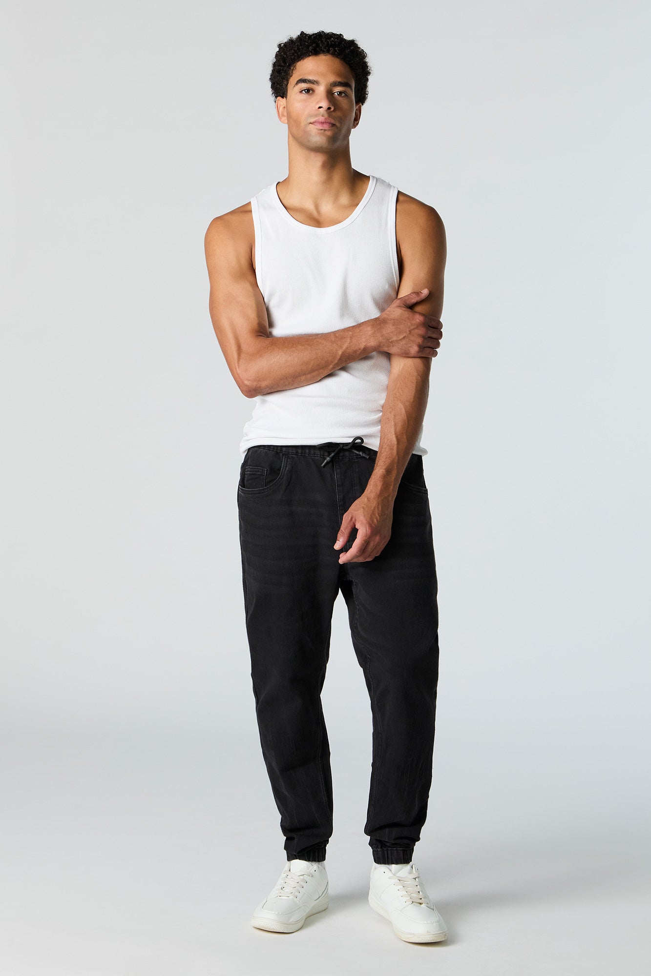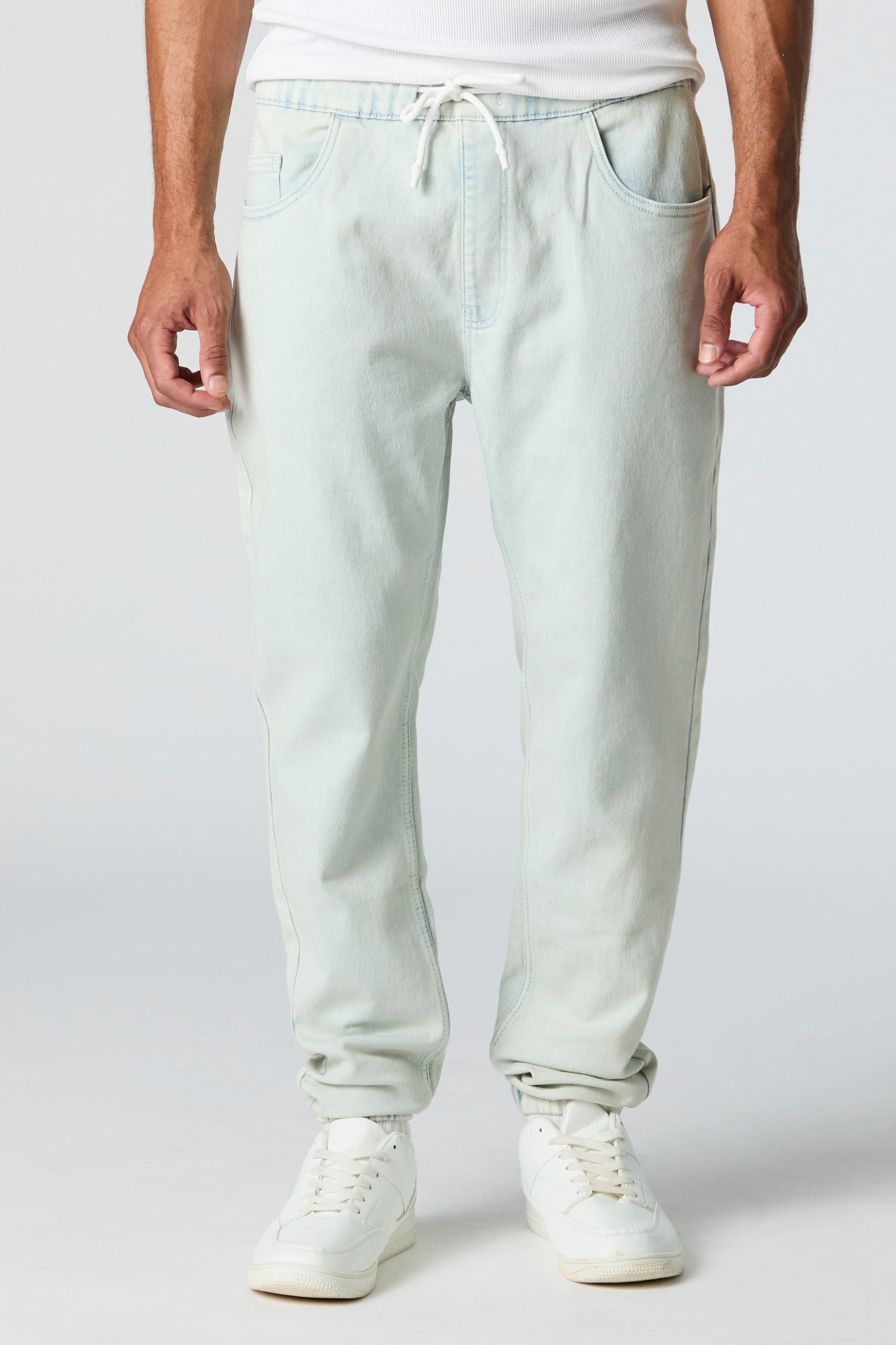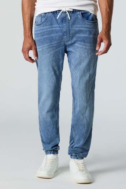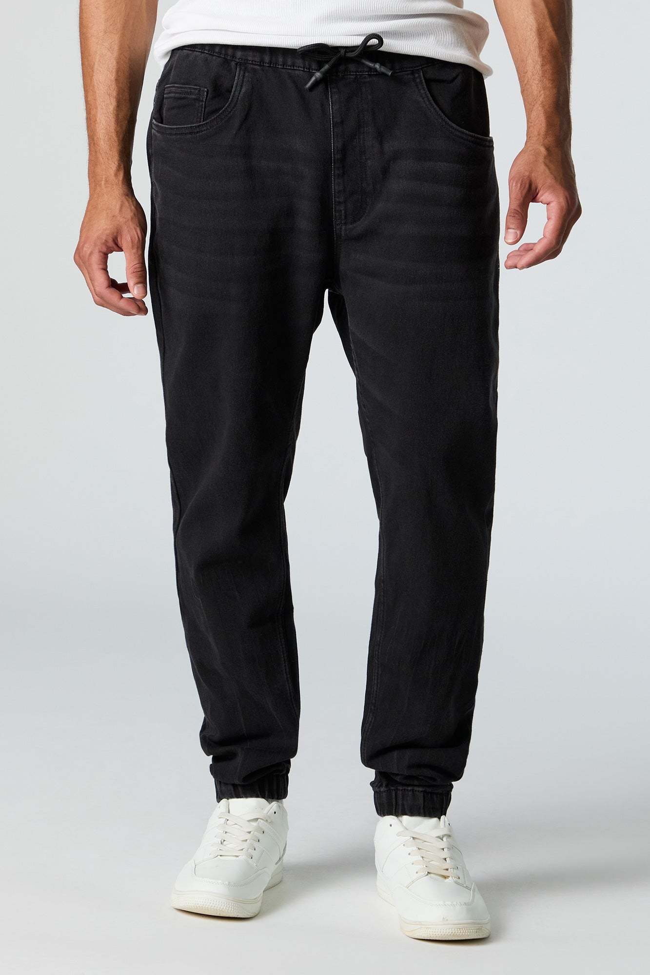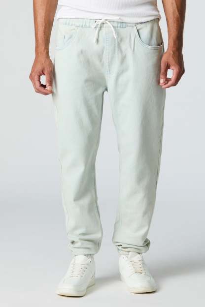 Our new season obsession? Denim everything. This jogger features denim material, drawstring waist, slide-in pockets, and slide-in pockets.
