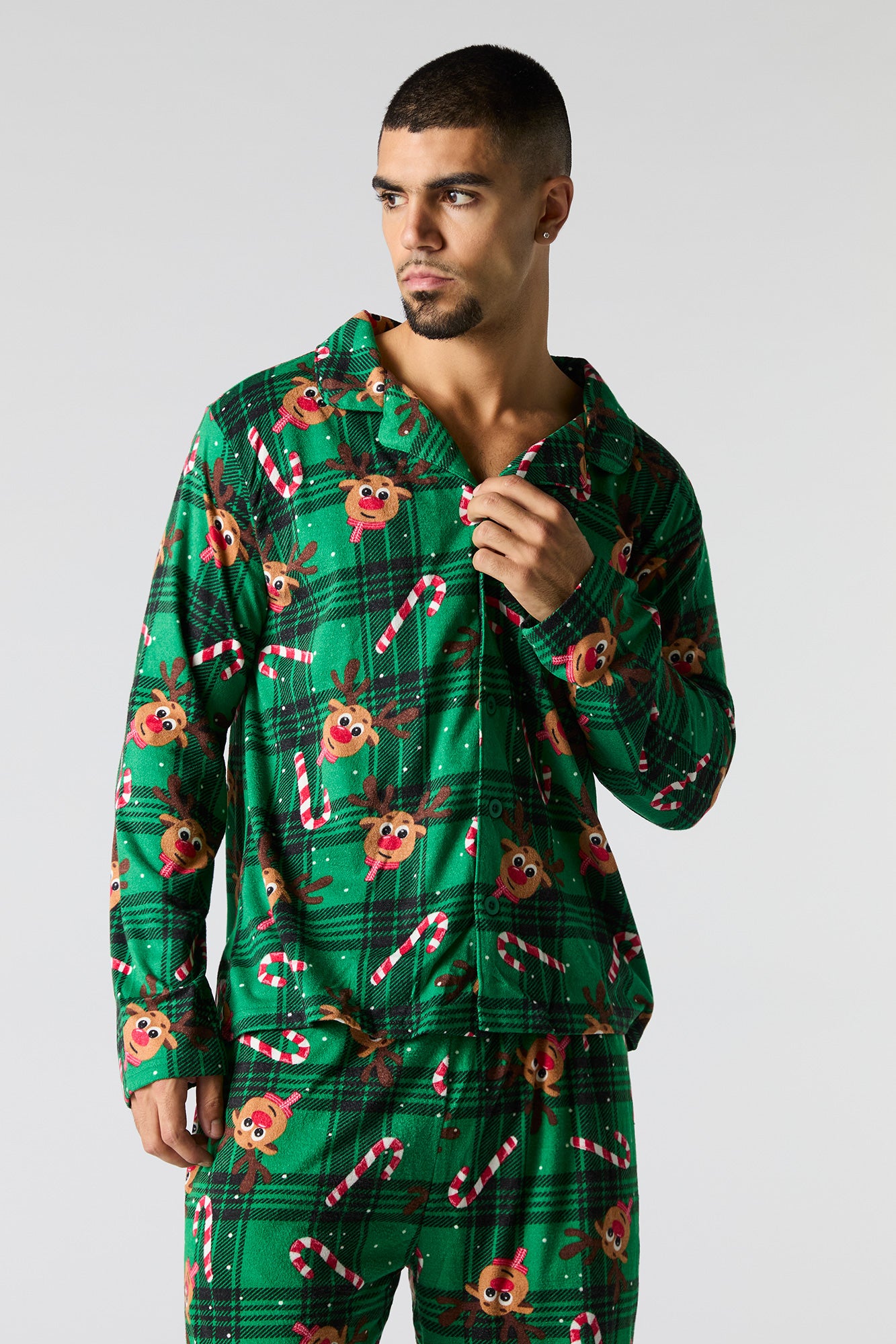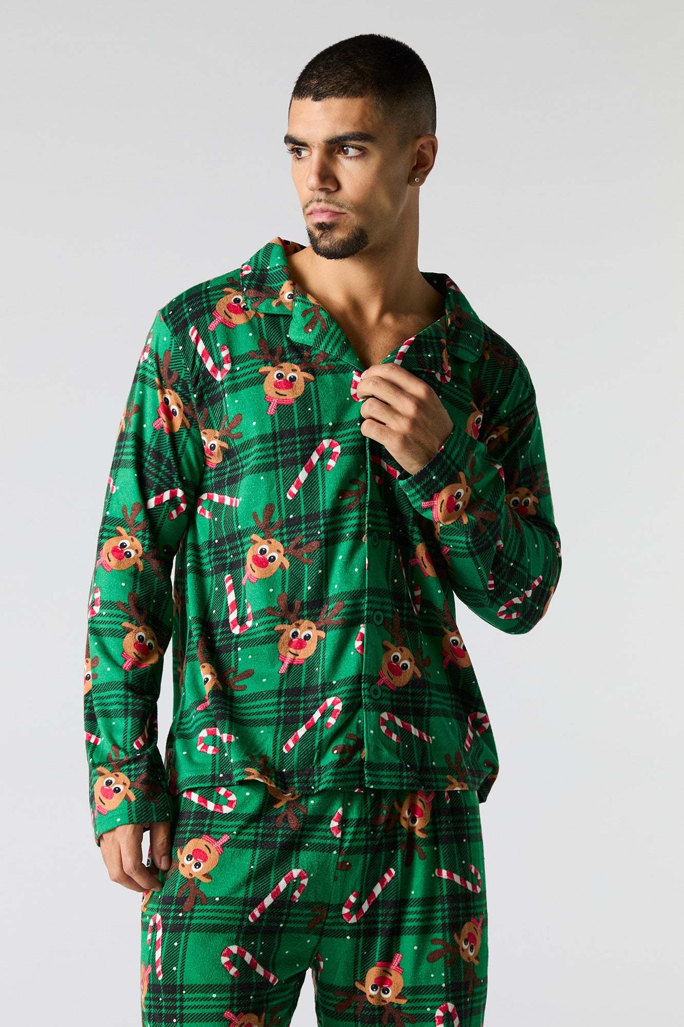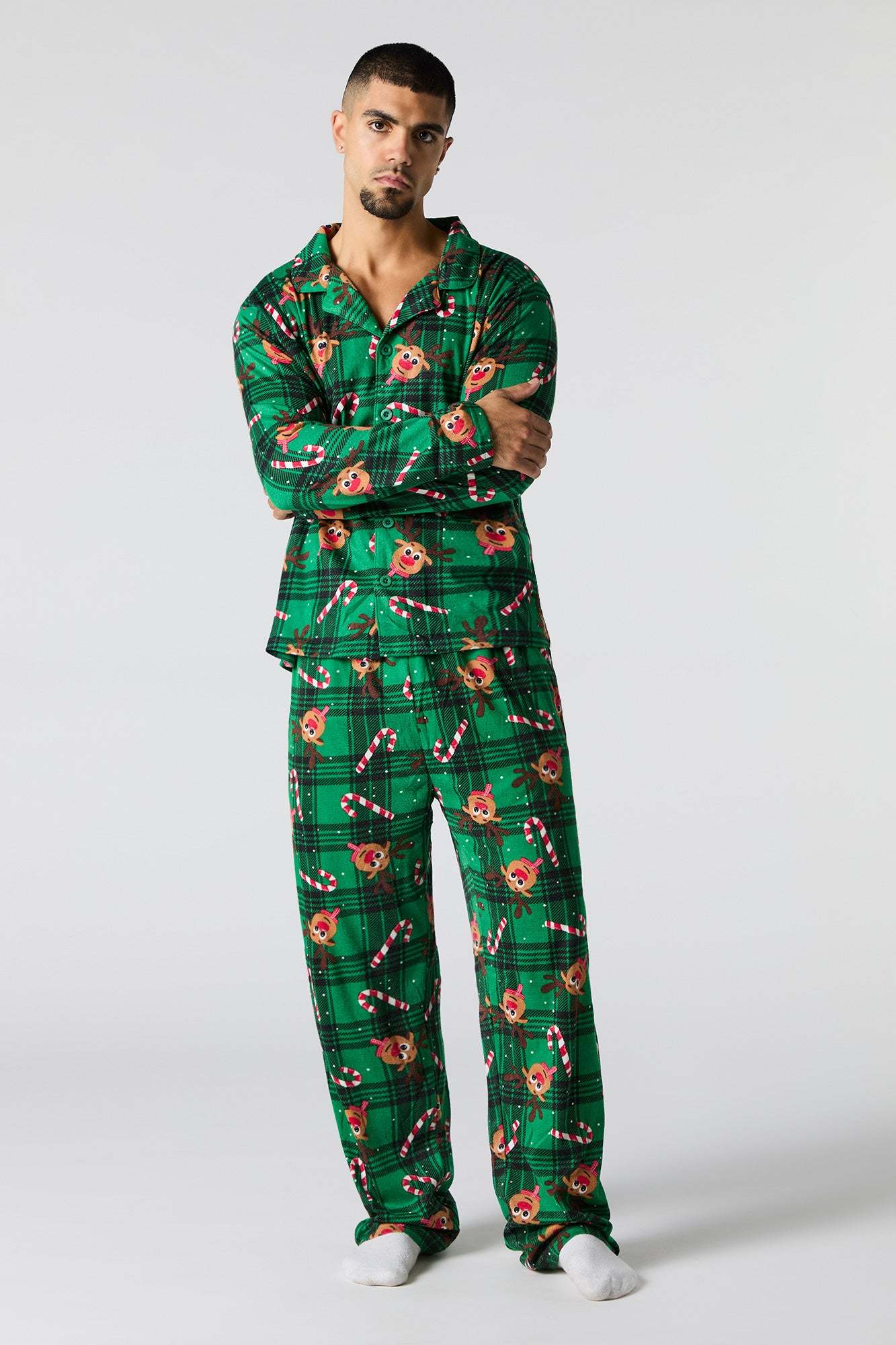 Get the whole fam in the holiday spirit with our matching Christmas jammies! From cozy flannels to festive prints, these styles are perfect for creating picture-perfect moments. This pajama set comes with a top featuring flannel material, all-over print, collared neckline, button-up front, long sleeves, and a matching pant featuring flannel material, all-over print, and elastic waist.