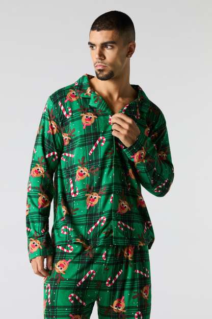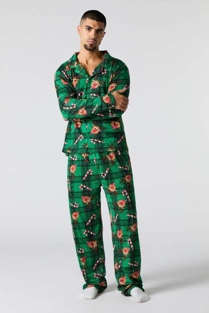 Mens Fammy Jammies Rudolph Flannel 2 Piece Pajama Set