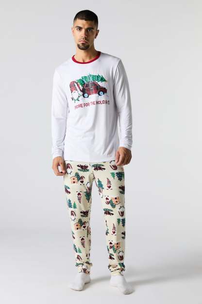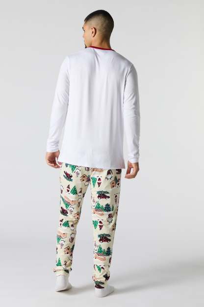 Get the whole fam in the holiday spirit with our matching Christmas jammies! From cozy flannels to festive prints, these styles are perfect for creating picture-perfect moments. This pajama set comes with a top featuring graphic front, crew neckline, long sleeves, and a matching pant featuring all-over print and elastic waist.