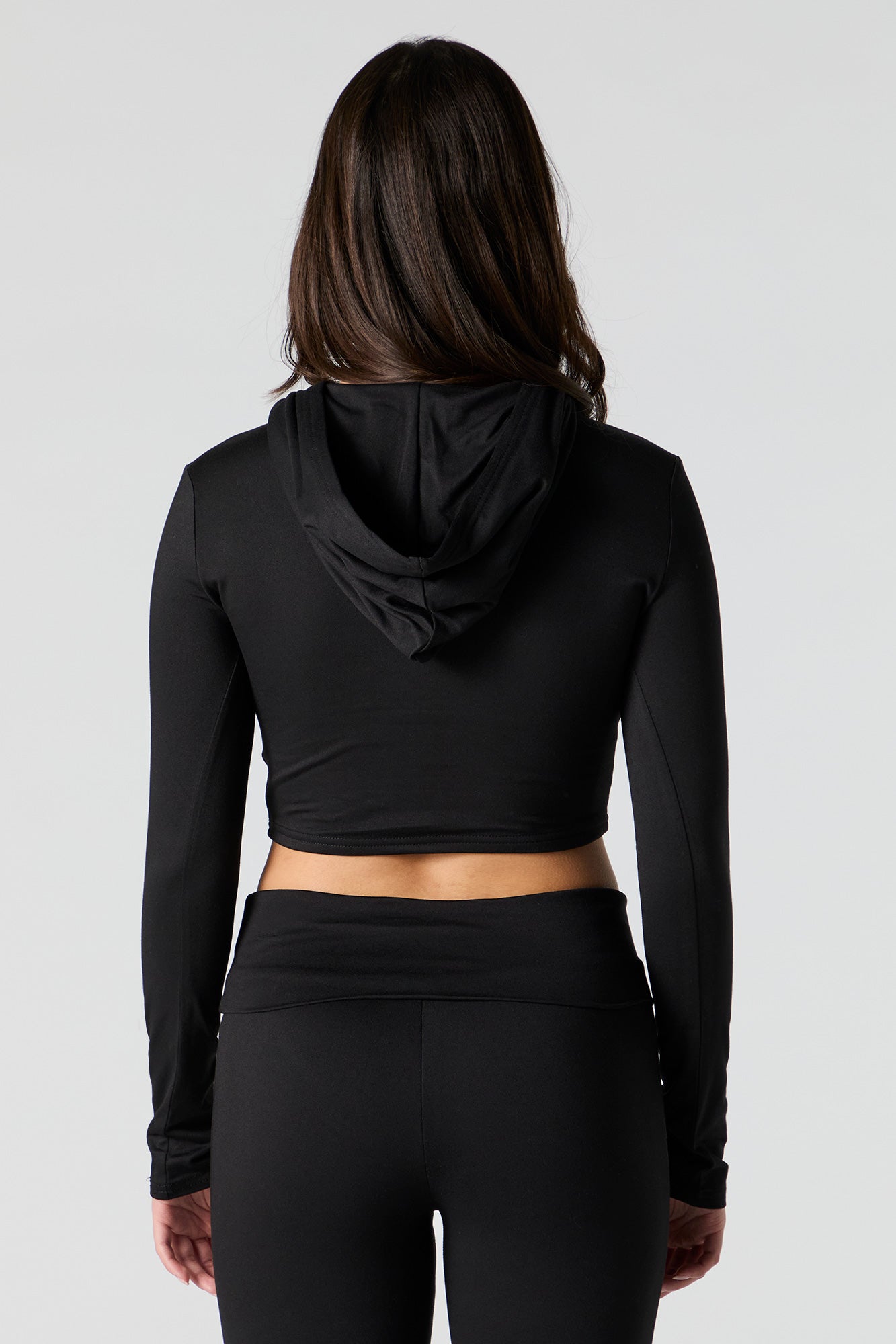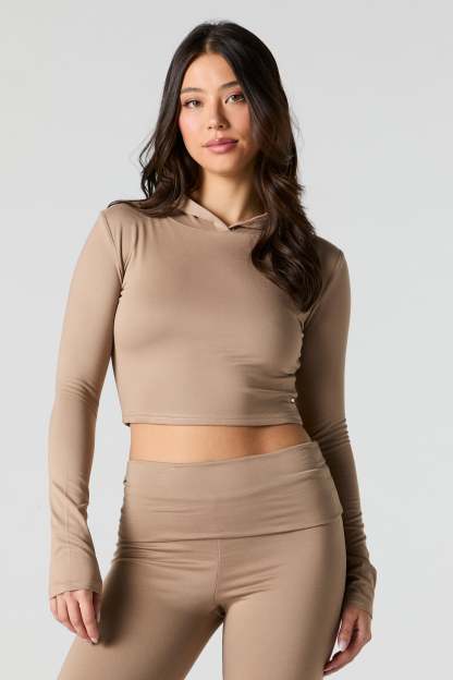 This active hoodie features soft material, hood, long sleeves, and cropped hem. Pair with our to complete the look.