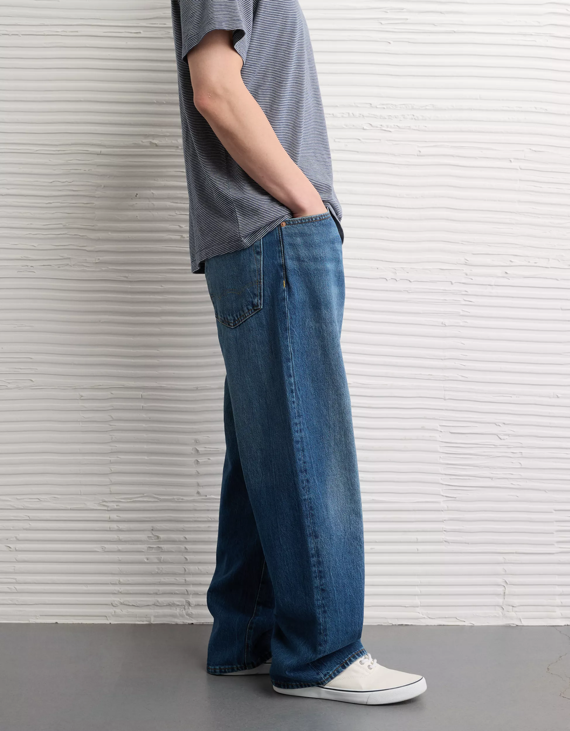 An oversized, slouchy jean for a cool skater-inspired look.Rigid cotton denimClassic jean pocket stylingVintage washMaterials & Care