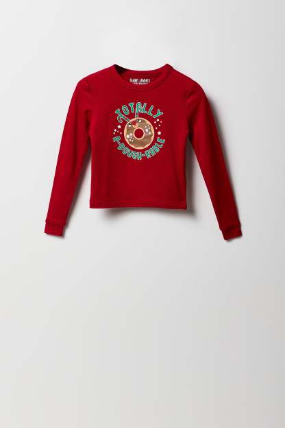 Get the whole fam in the holiday spirit with our matching Christmas jammies! From cozy flannels to festive prints, these styles are perfect for creating picture-perfect moments. This pajama set comes with a top featuring graphic front, crew neckline, long sleeves, and a matching bottom featuring all-over print, elastic waist, and cinched ankles.