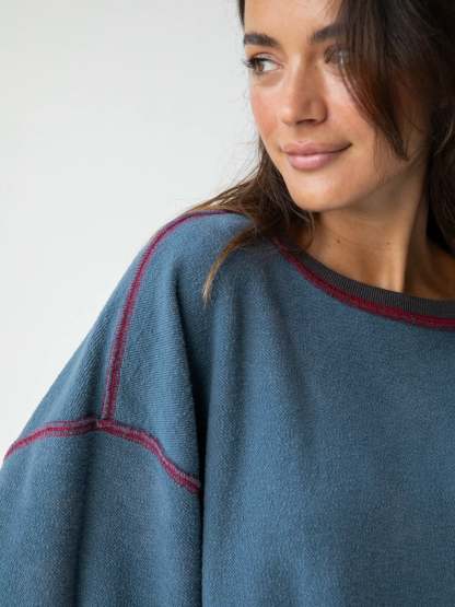 2-in-1 Oversized Sweatshirt - Navy Red Feathers