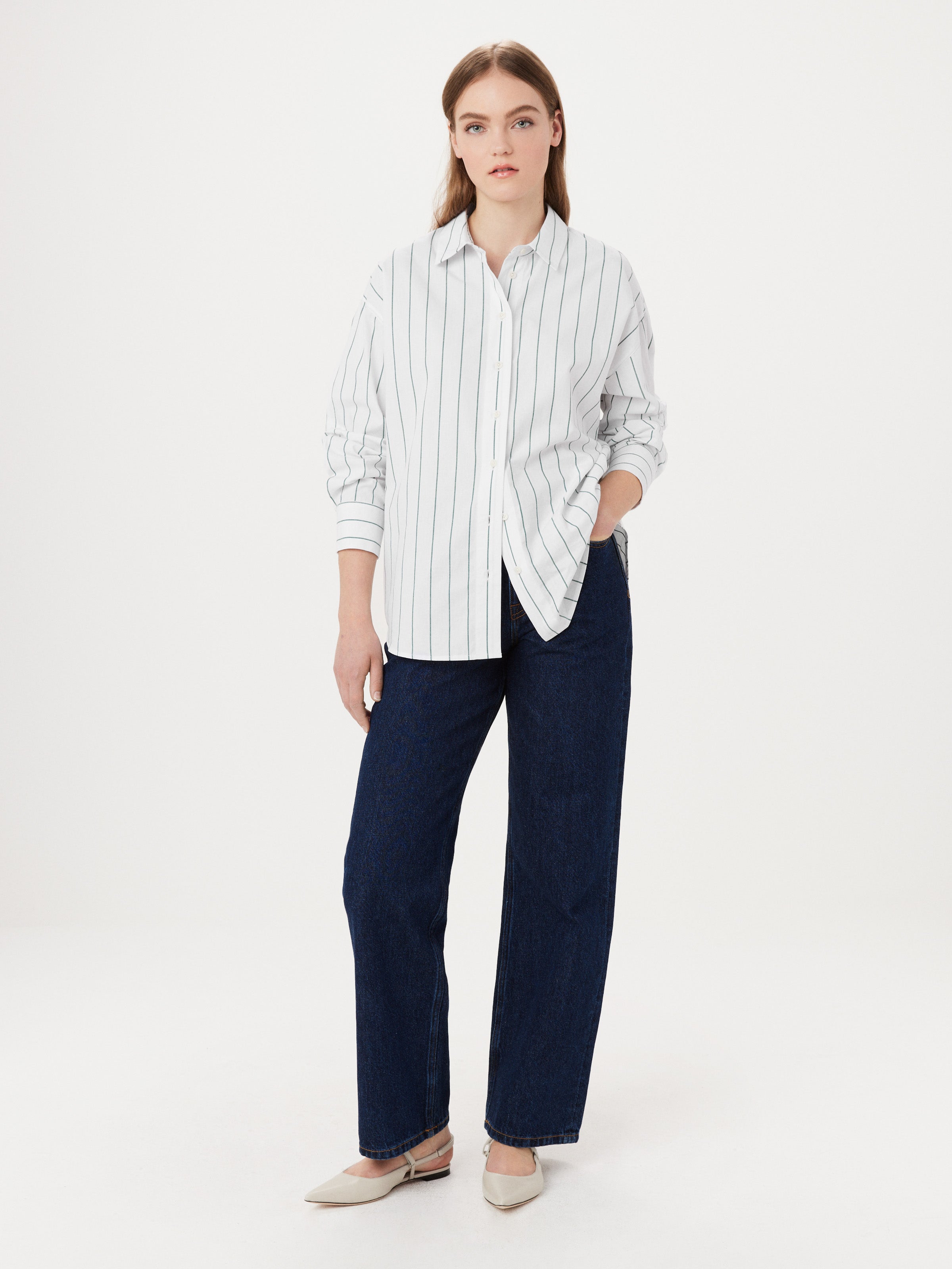 A go-to piece designed with your style and the environment in check. Made from kapok, one of the most responsible fibres on Earth. Features an all-over stripe pattern. Loose fit. Front button closure. Patch pocket at the chest. Long sleeves with cuffed ends.