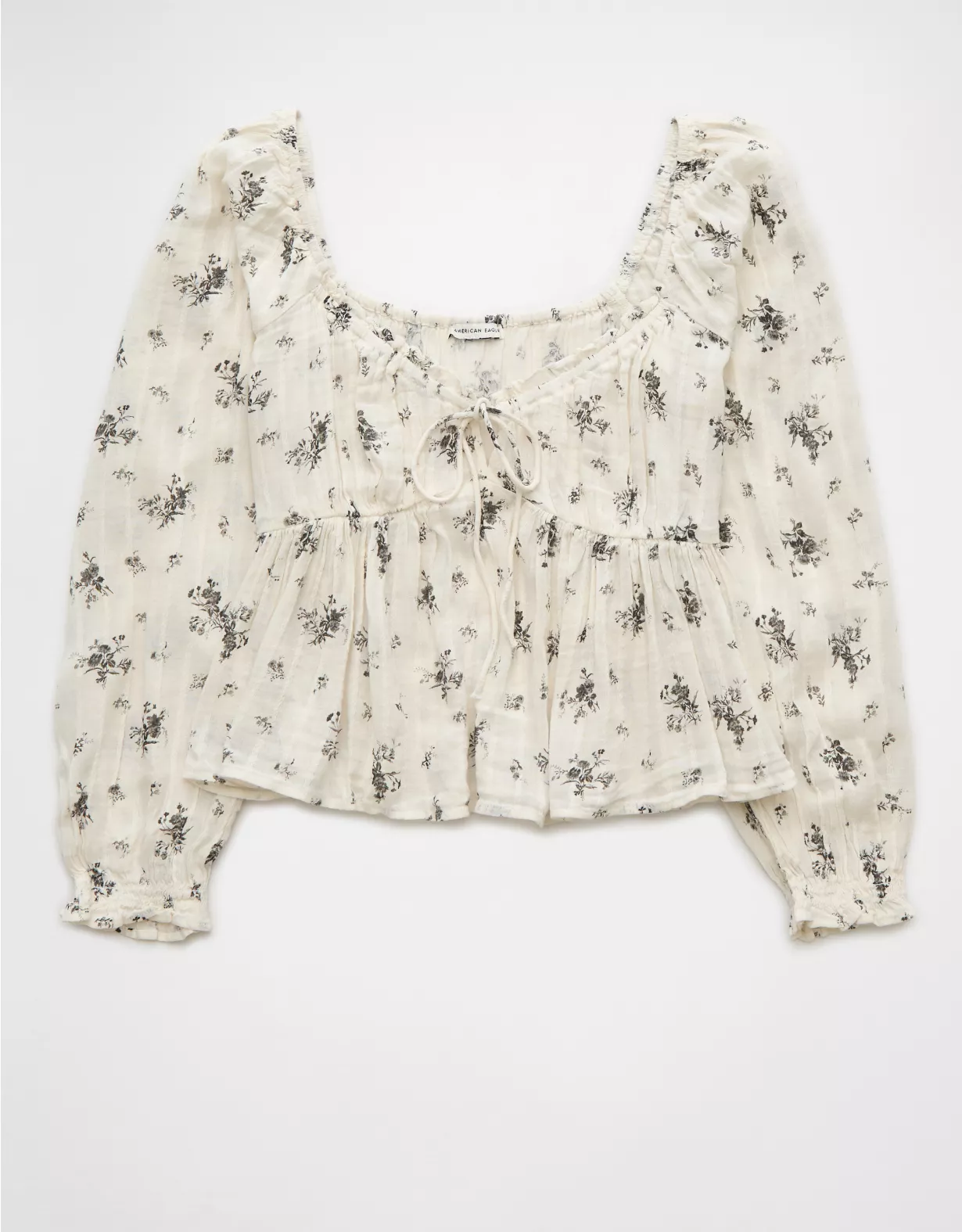 Made from lightweight cotton, this flowy babydoll top features a babydoll silhouette & pretty tie-front for a fresh femme look.