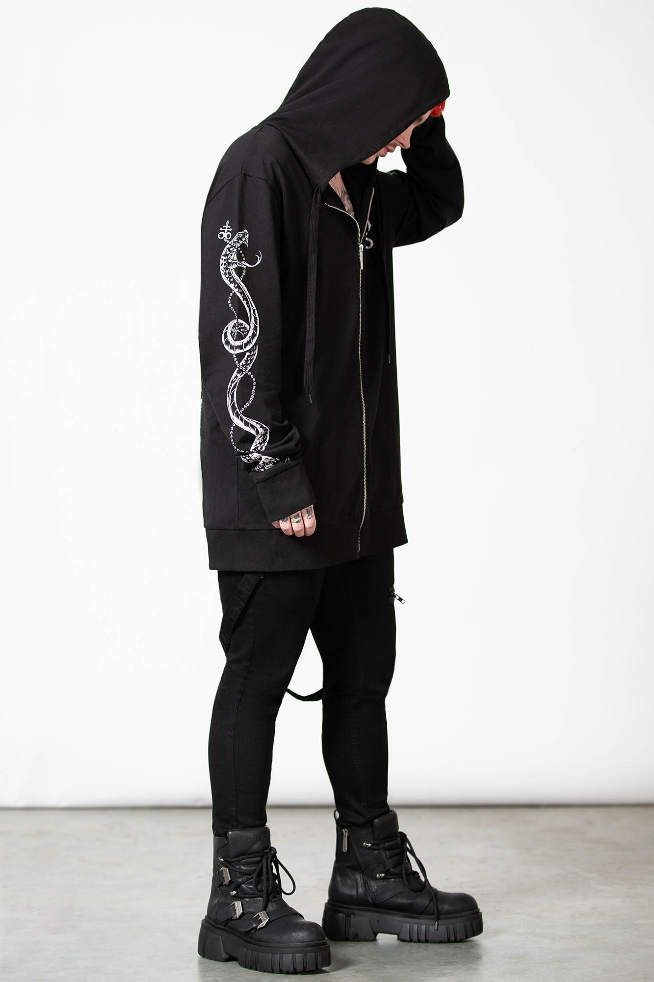 - Soft cotton jersey. - Statement print on back, sleeves and front. - XL Hood. - Longline. - Unisex, so it's for everyone. - Fitted.
