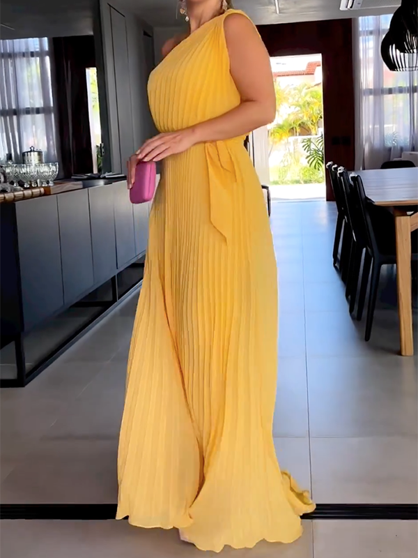 Asymmetric Solid Color Loose Sleeveless One-Shoulder Jumpsuits