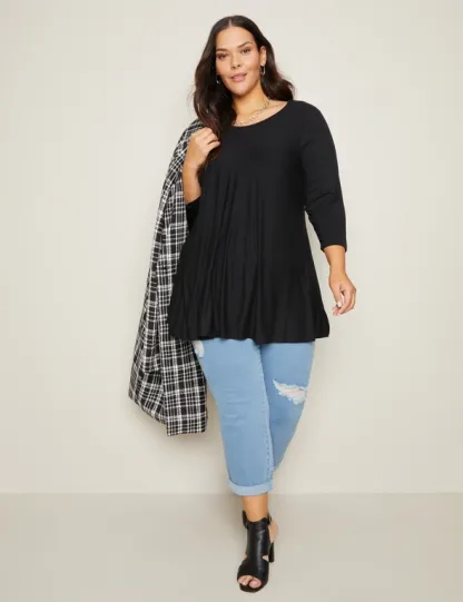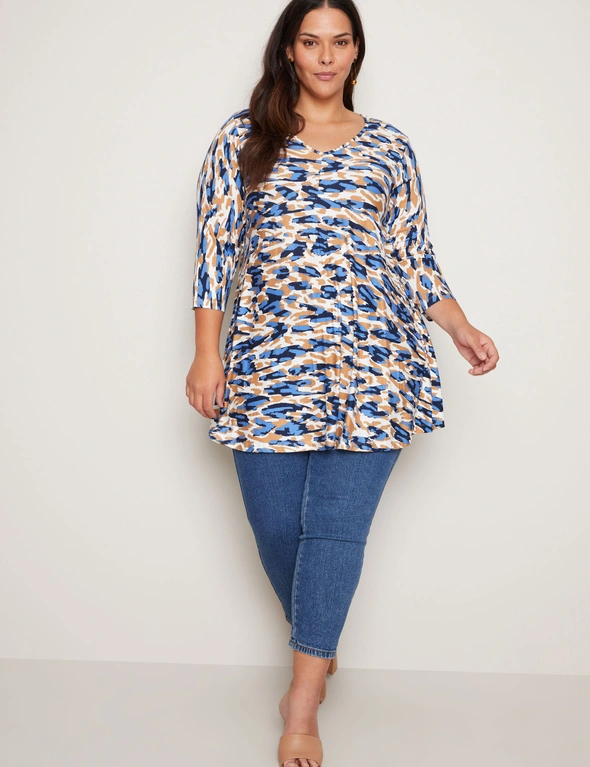 Introducing the Autograph 3/4 Sleeve Knit Tunic, a captivating addition to your wardrobe. Carefully crafted, this tunic boasts eye-catching foil print detailing and 3/4 sleeves for a stylish yet comfortable wear. Made from high-quality fabric, it offers both durability and breathability. The flattering silhouette and versatile design make it perfect for pairing with jeans or leggings for a casual look or dressing up with trousers for a more polished ensemble. Whether for daytime outings or evening gatherings, this tunic effortlessly elevates any outfit with its unique foil print. Embrace elegance and flair with the Autograph 3/4 Sleeve Print Foil Tunic.