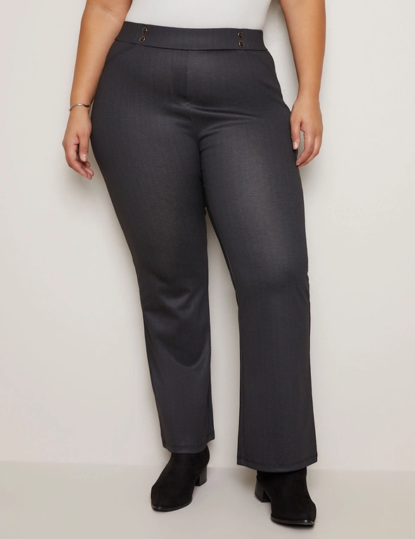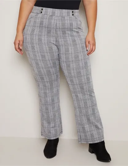 Introducing the Autograph Bootleg Ponte Button Trim Pant, a timeless blend of style and comfort for the modern woman. Crafted with precision, these pants feature a classic bootleg silhouette that flatters every figure. The button trim detail adds a touch of sophistication, elevating the look from ordinary to extraordinary. Made from high-quality ponte fabric, they offer both structure and stretch, ensuring a comfortable fit all day long. Whether paired with a blouse for the office or a cozy sweater for a casual outing, these pants effortlessly combine versatility and elegance, becoming a staple in your wardrobe rotation. Redefine your style with Autograph.