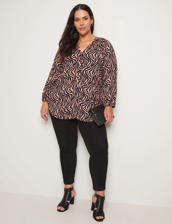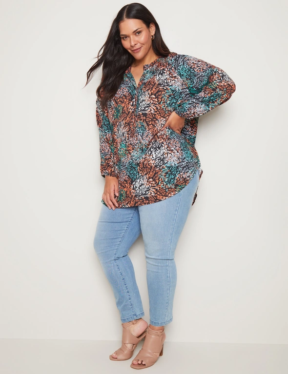Introducing the Autograph Half Placket Printed Tunic, a versatile addition to your wardrobe. Expertly crafted, this tunic features a stylish half placket and a captivating print for a modern yet timeless look. With its long sleeves and relaxed fit, it offers comfort and ease of movement for all-day wear. Made from high-quality fabric, it ensures durability and softness against the skin. Perfect for pairing with leggings or jeans, this tunic effortlessly transitions from day to night. Whether you're running errands or meeting friends for brunch, embrace effortless style with Autograph's printed tunic.