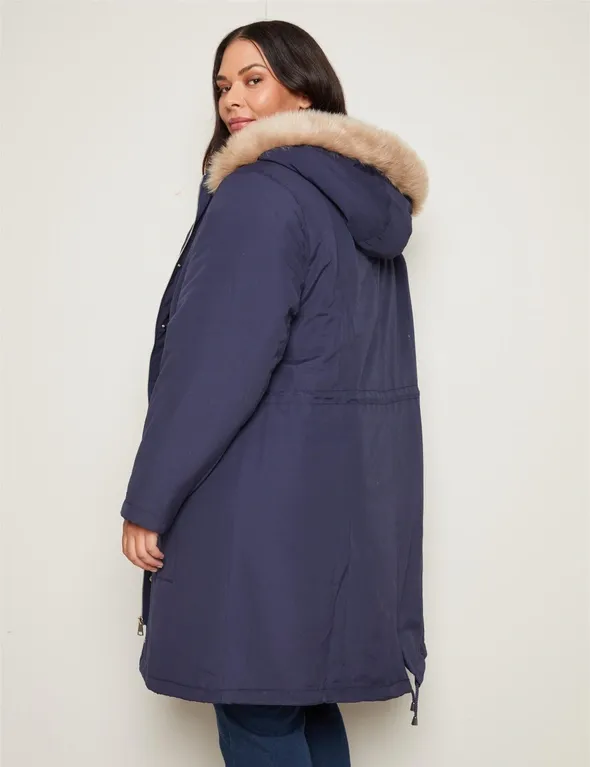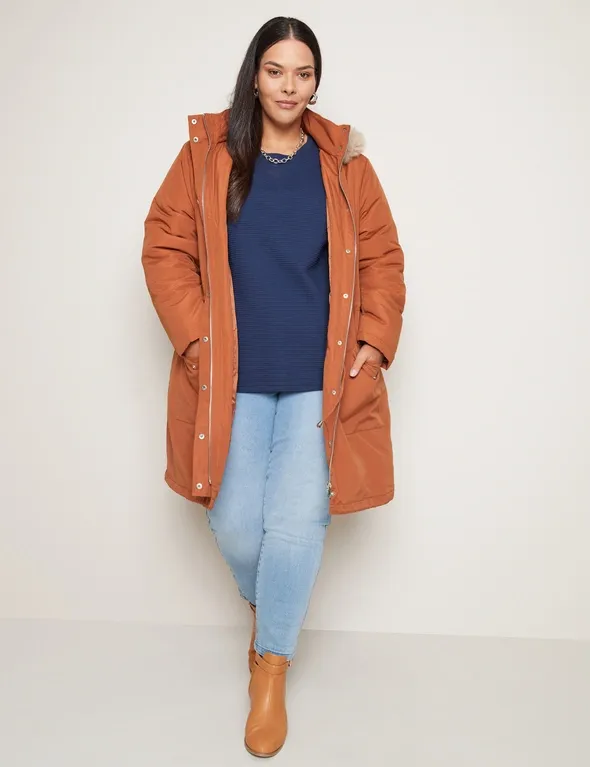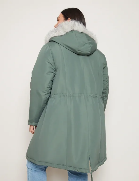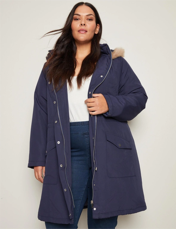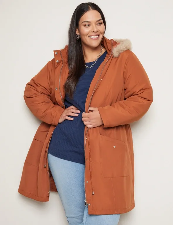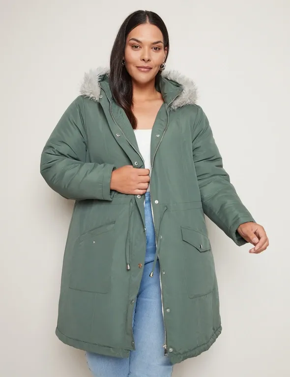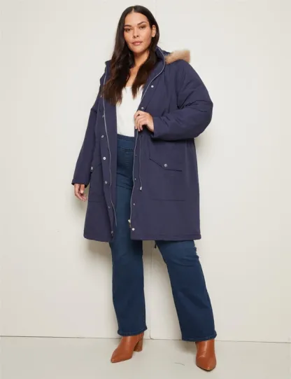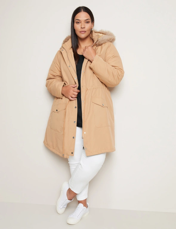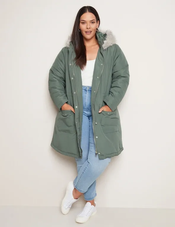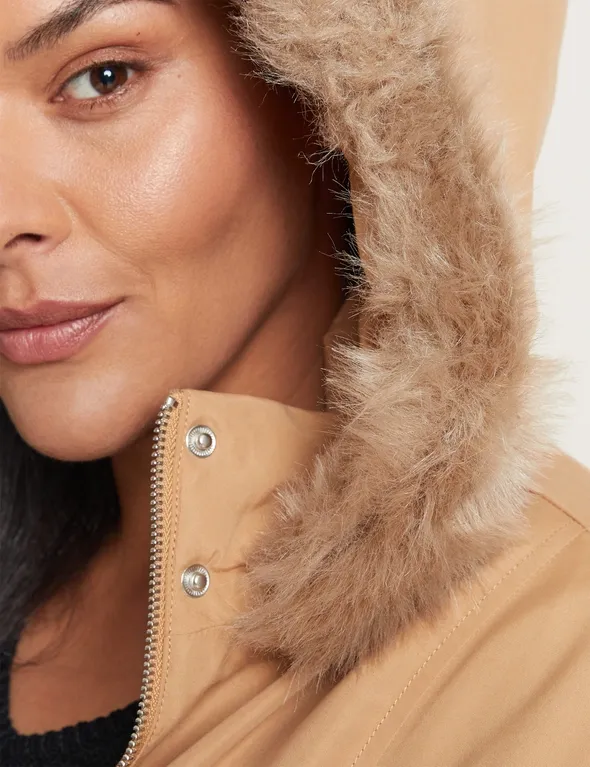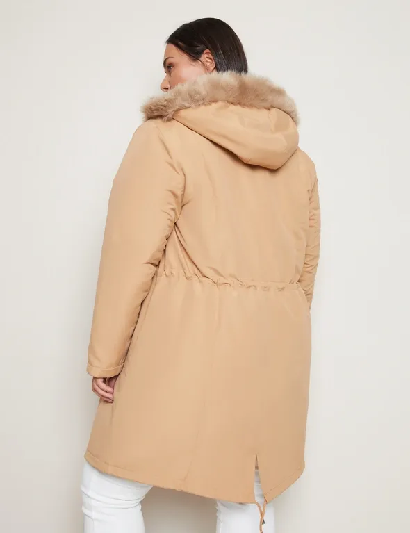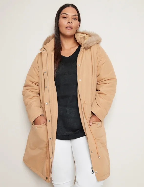 Autograph Long Sleeve Fur Hood Parka Jacket