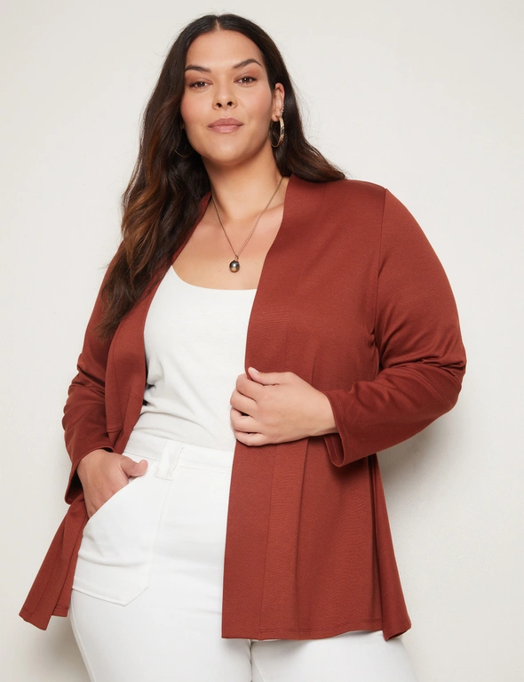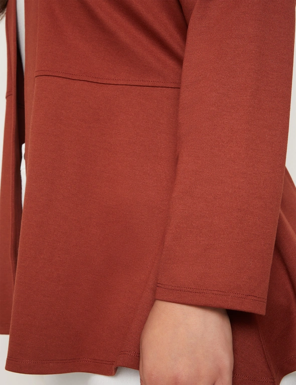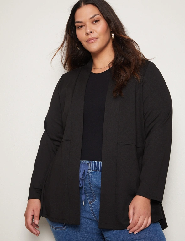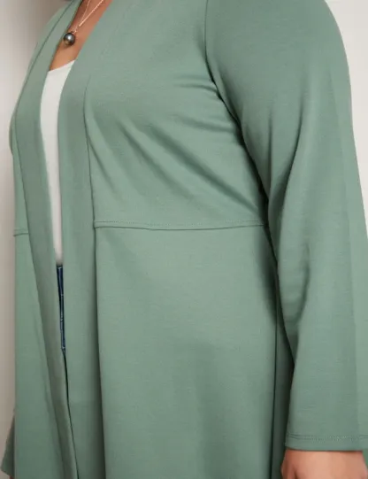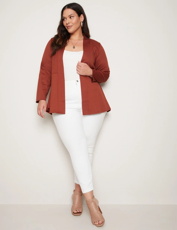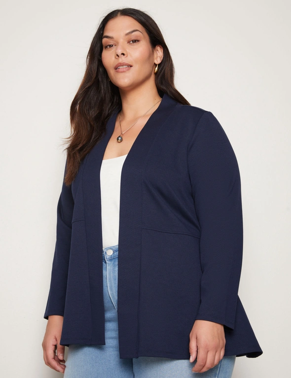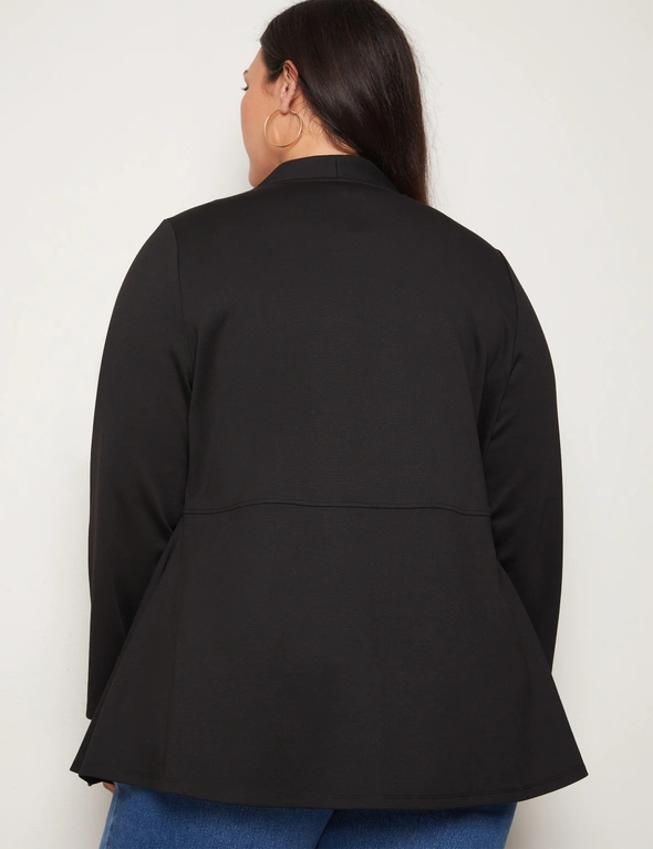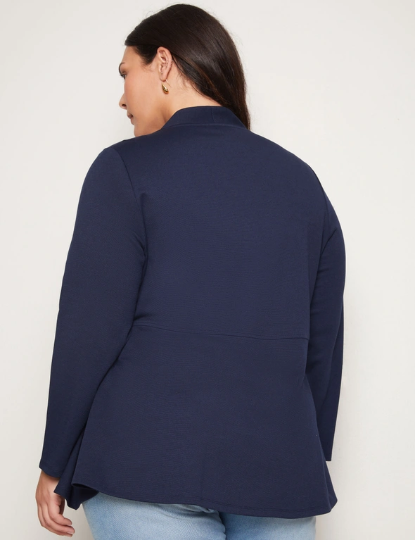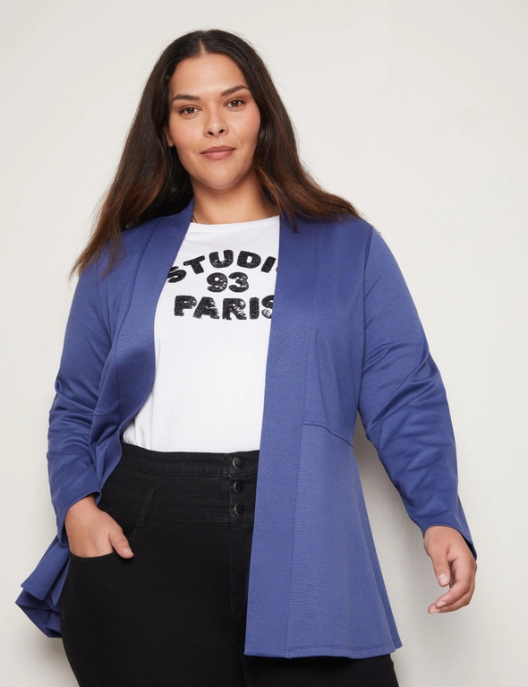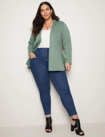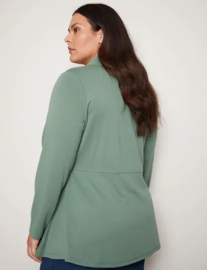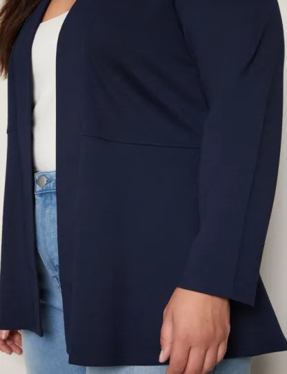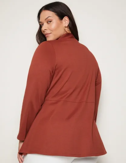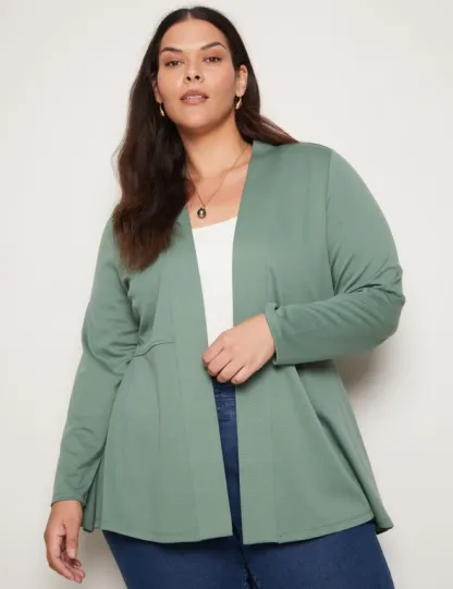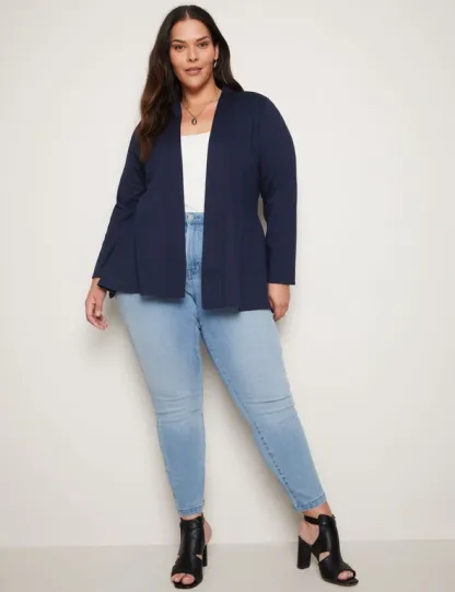 Introducing the Autograph Long Sleeve Peplum Style Ponte Cover Up, a chic addition to your wardrobe that seamlessly blends style and sophistication. Crafted with meticulous attention to detail, this cover-up features a flattering peplum silhouette that accentuates your curves while providing comfort. Made from high-quality ponte fabric, it offers both structure and stretch, ensuring a flattering fit for all body types. The long sleeves add an elegant touch, making it versatile for day-to-night wear. Whether layered over a dress or paired with pants, this cover-up exudes effortless charm and elevates any outfit with its timeless appeal. Redefine your style with Autograph.