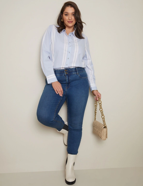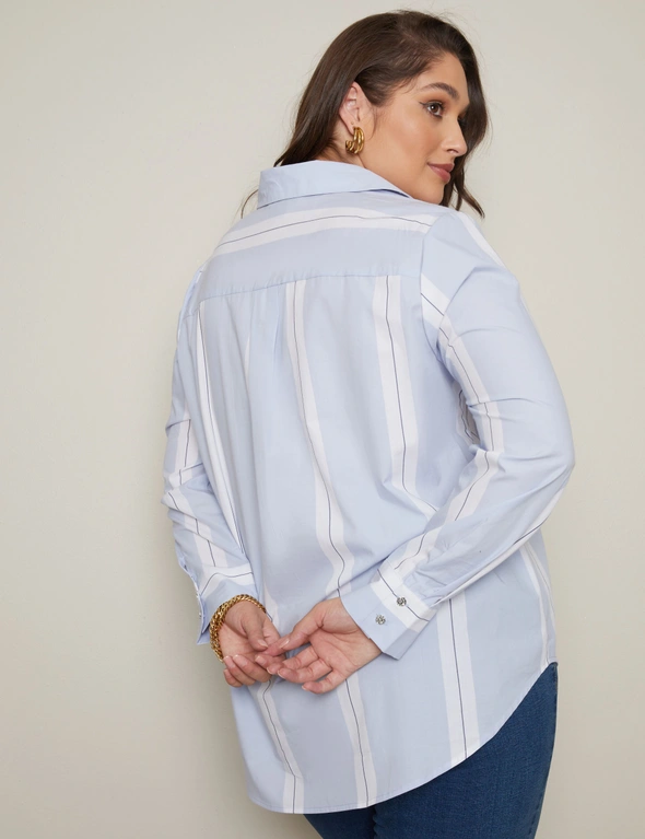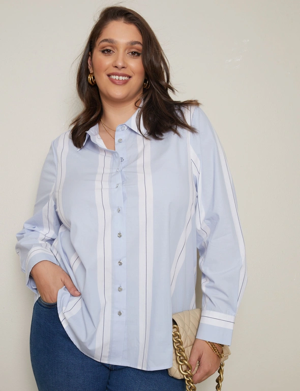 Introducing the Autograph Long Sleeve Wide Stripe Shirt – where contemporary design meets timeless sophistication. Embrace a bold yet refined look with wide horizontal stripes that effortlessly elevate your style. Crafted from premium, breathable fabric, this shirt ensures comfort throughout your day. The classic long sleeves and tailored fit offer versatility for both formal and casual occasions. The meticulous attention to detail is evident in the stitching and quality construction. Whether paired with tailored trousers for a polished office ensemble or denim for a smart-casual vibe, this shirt is a versatile wardrobe essential. Redefine your wardrobe with Autograph.