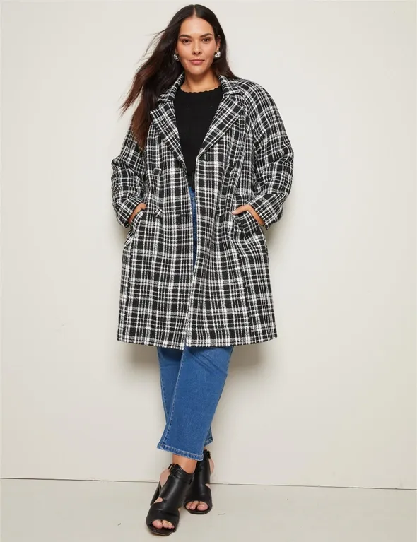 Introducing the Autograph Longline Check Coat, a statement piece for your winter wardrobe. Meticulously crafted, this coat boasts a timeless check pattern and a longline silhouette for both style and warmth. Made from high-quality materials, it offers durability and insulation against colder temperatures. The classic design features a button-up front and pockets for added functionality. Whether layered over casual attire or paired with formal wear, this coat effortlessly elevates any ensemble. With its versatility and sophistication, the Autograph Longline Check Coat is the perfect outerwear choice for both city strolls and countryside escapes, ensuring you stay stylish and cozy wherever you go.