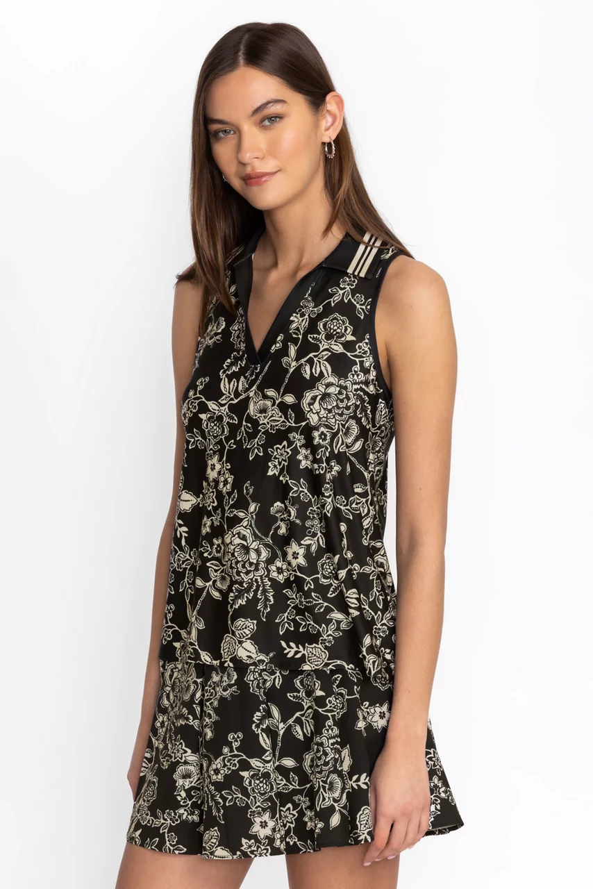 Crafted from a lightweight fabric with a hint of stretch, the Vassala Bee Active Polo Swing Tank is the perfect choice for outdoor activity. Featuring a V-neckline with a sporty striped collar this relaxed-fit tank is finished with an athletic-inspired racer back. Pair with a tennis skirt and athletic sneakers for a day on the courts.